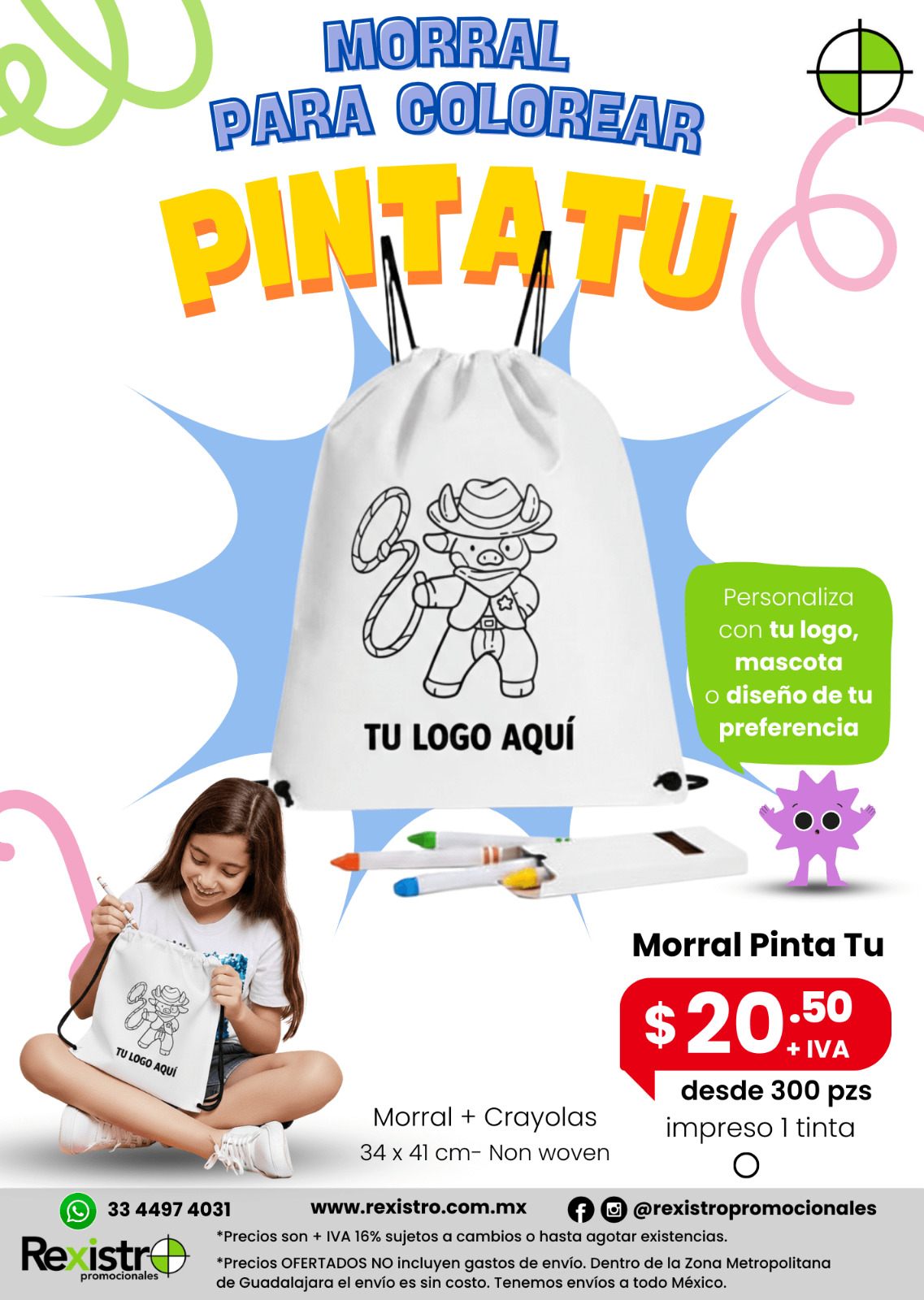 Oferta de Morral para colorear con crayolas ideal para el Día del Niño personalizado con logo en serigrafía