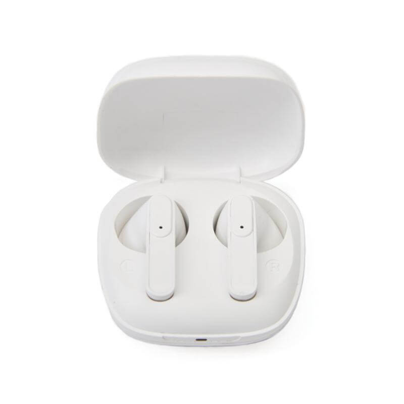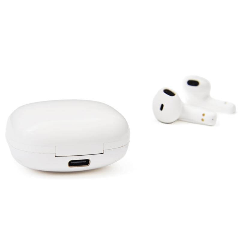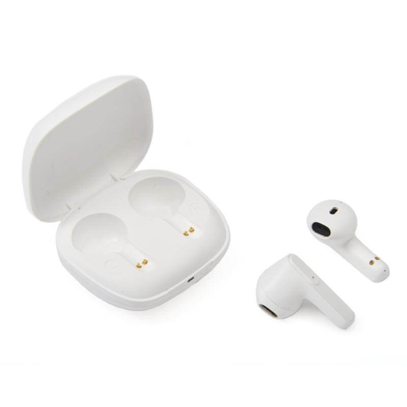 Audífonos inalámbricos bluetooth con función manos libres con estuche de 500 mAh, entrada de carga tipo C. Cuenta con indicadores de luz LED, botón touch para encender, apagar y pausar el audio. Duración aprox. de reproducción 45 min. Compatible con iOS y Android. Incluye cable cargador USB. Presentación: Caja en color blanco.