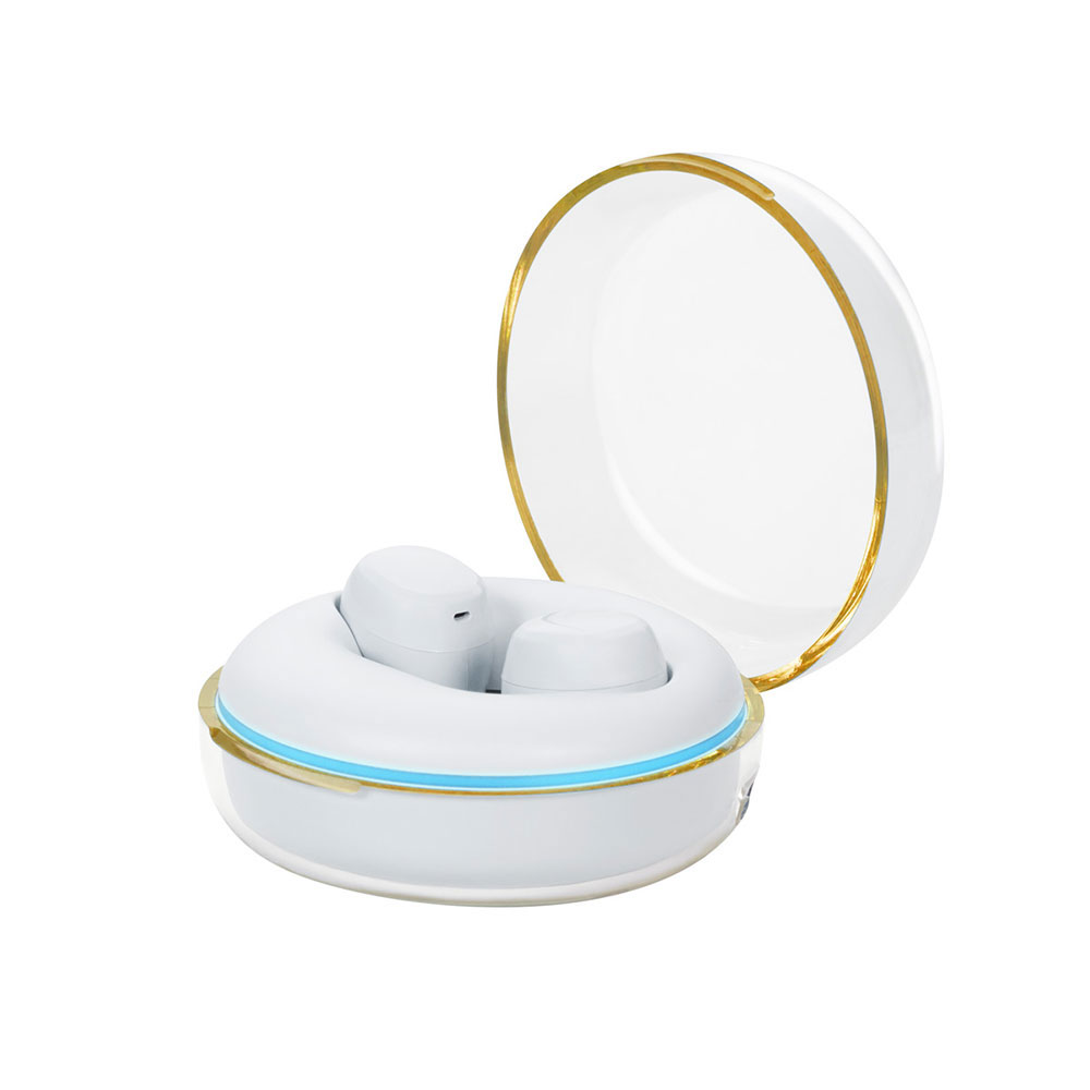 Audífonos bluetooth con base recargable iluminada con luz LED. Controles integrados touch para llamadas, volumen y reproducción de audio. Reproducción de música de 4 a 5 hrs aproximadamente. Rango de conexión de 10 metros. batería de 30 mAh en los auriculares y 200 mAh en el estuche de carga. Incluye cable cargador USB, estuche de carga con conexión tipo C y caja individual.
