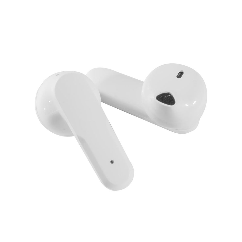 Audífonos bluetooth inalámbricos con base recargable. Control touch para reproducción de música y función de llamada. Reproducción de música de 3 horas aproximadamente. Rango de conexión de 10 metros. batería de 20 mAh (audífonos) y 180 mAh (estuche). Incluye cable con puerto tipo C.