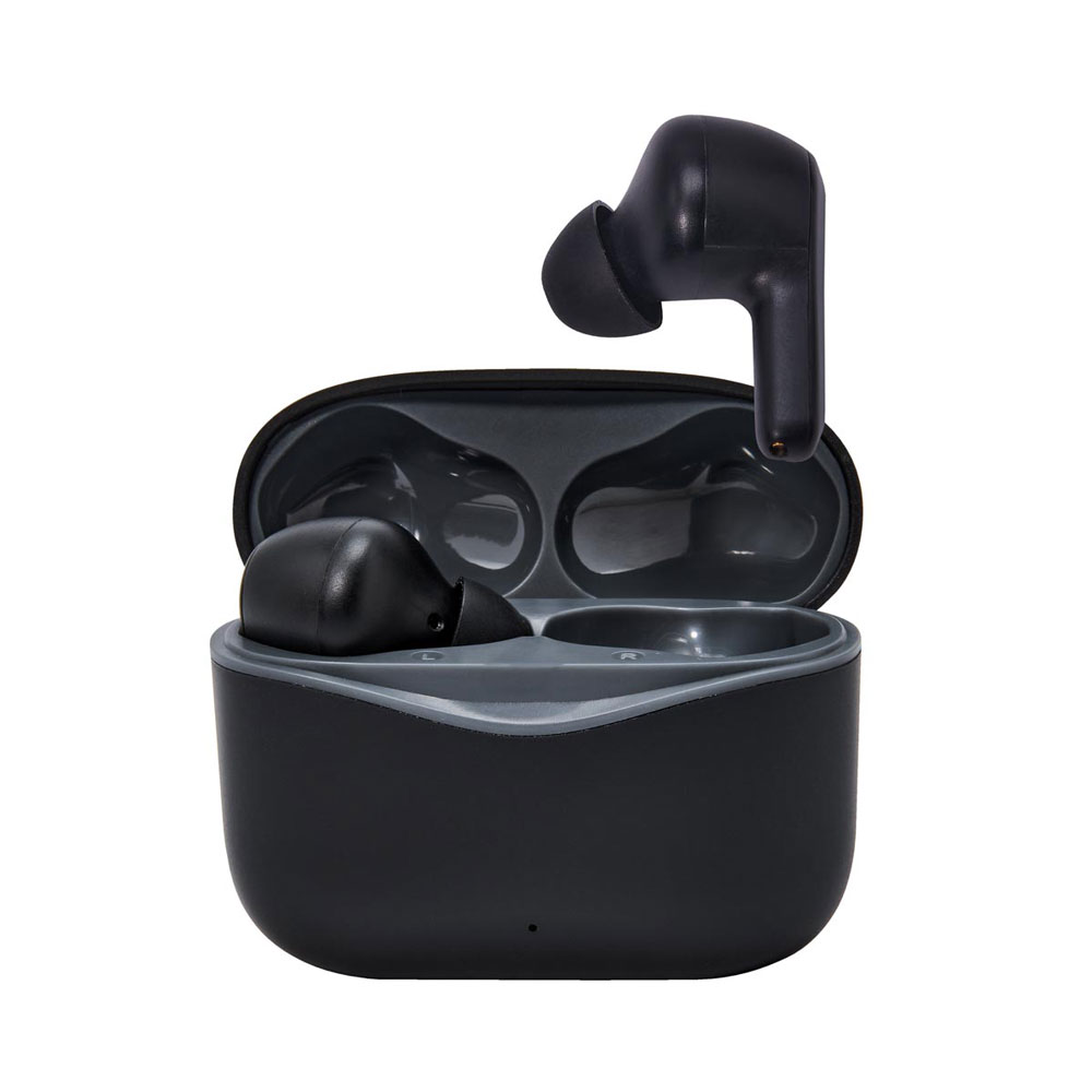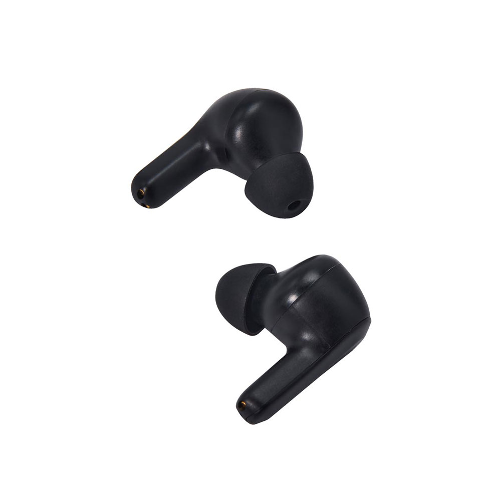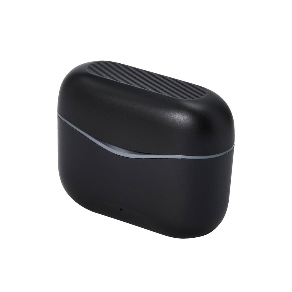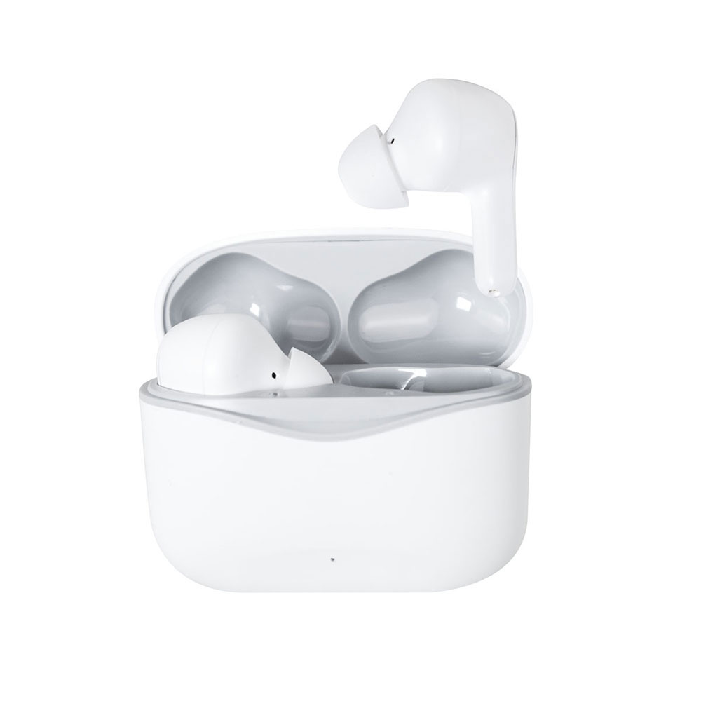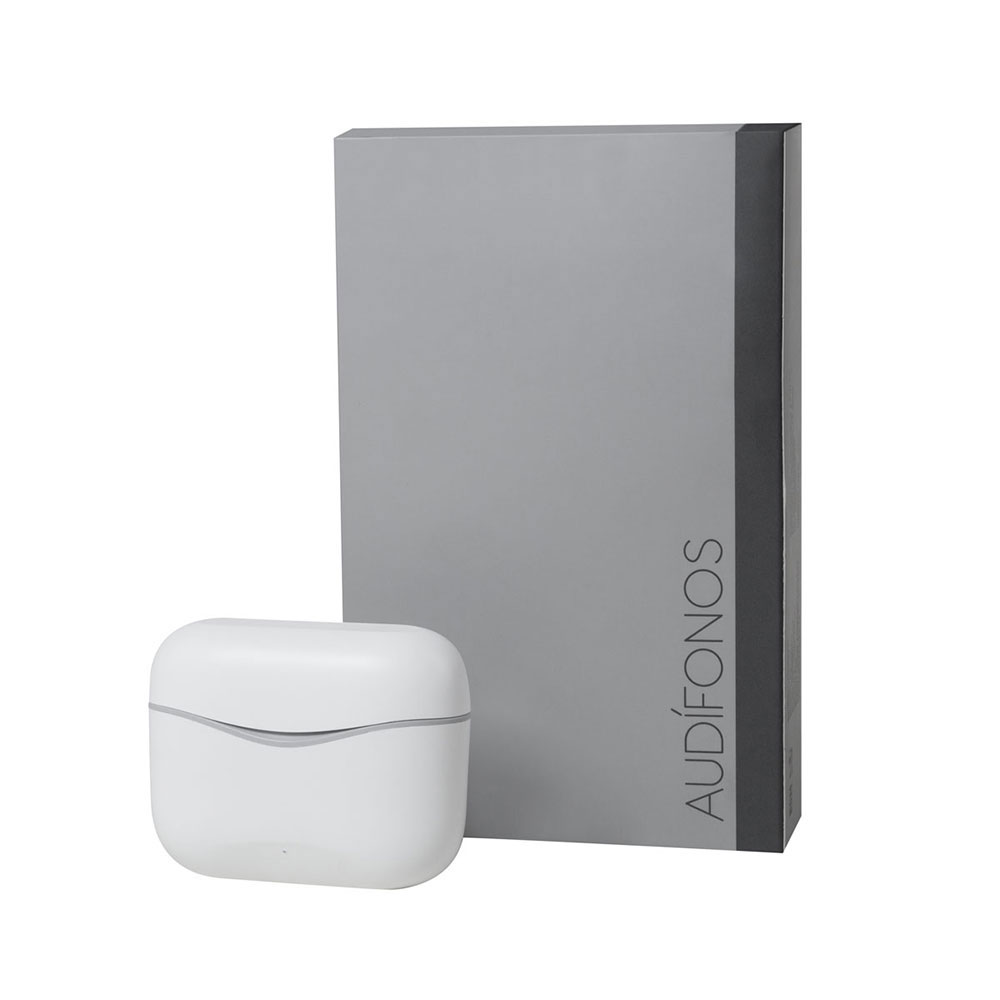 Audífonos bluetooth con base recargable. Controles integrados touch para llamadas, volumen y reproducción de audio. Reproducción de música 3 a 4 hrs aproximadamente. Rango de conexión de 10 metros. Incluye estuche de carga y cable cargador USB.