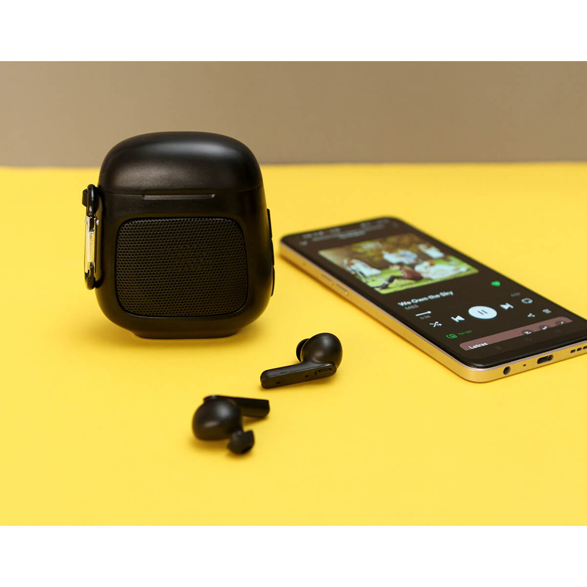 Bocina con audífonos con conexión de sonido sin cables, fabricada en plástico, incluye arnés para fácil transporte, carga a través de cable USB (incluido). Cuenta con audífonos inalámbricos que ofrecen una experiencia auditiva privada, perfecta para aquellos momentos en que deseas disfrutar de tu música sin molestar a los demás o para mantener conversaciones telefónicas más privadas. Incluye caja de cartón individual.