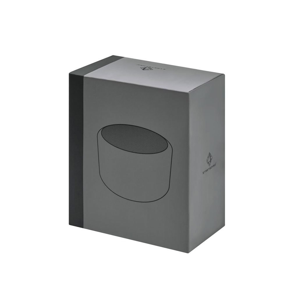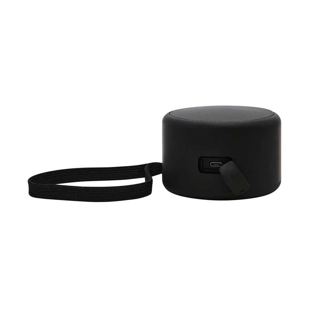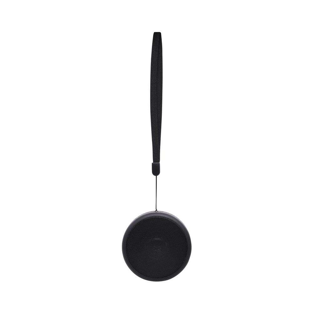 Bocina bluetooth con batería recargable. Tiempo de reproducción de 6 hrs aproximadamente. Controles integrados de llamada, volumen y reproducción de audio. A prueba de salpicaduras. Incluye cable cargador USB y correa para transportarla fácilmente.