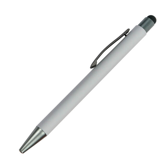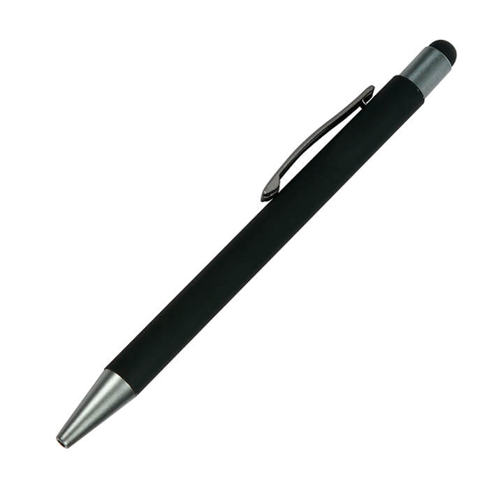 Bolígrafo fabricado en aluminio con cubierta Rubber, un material ligero y duradero que le confiere una apariencia moderna y resistente a largo plazo. Cuenta con una función touch, en la parte superior del bolígrafo como un puntero para dispositivos electrónicos de pantalla táctil. Utiliza tinta de escritura negra.