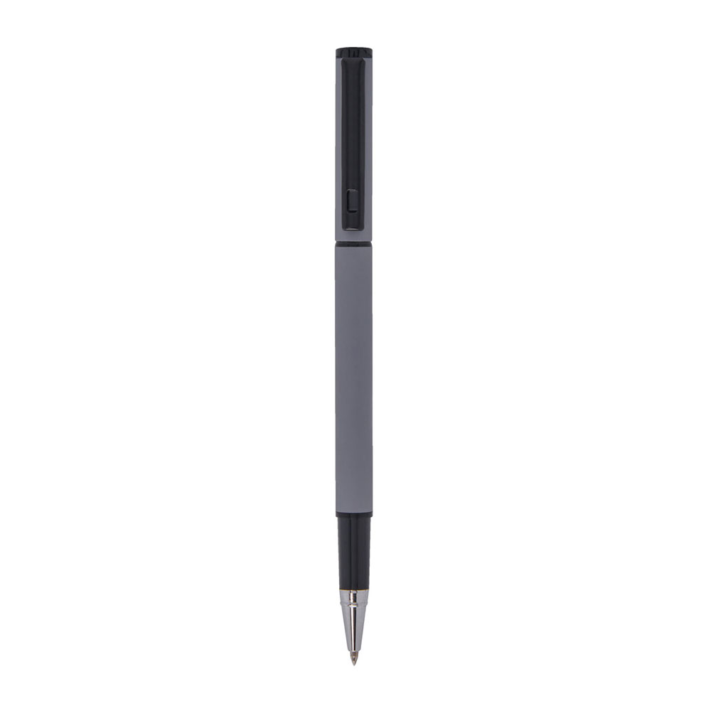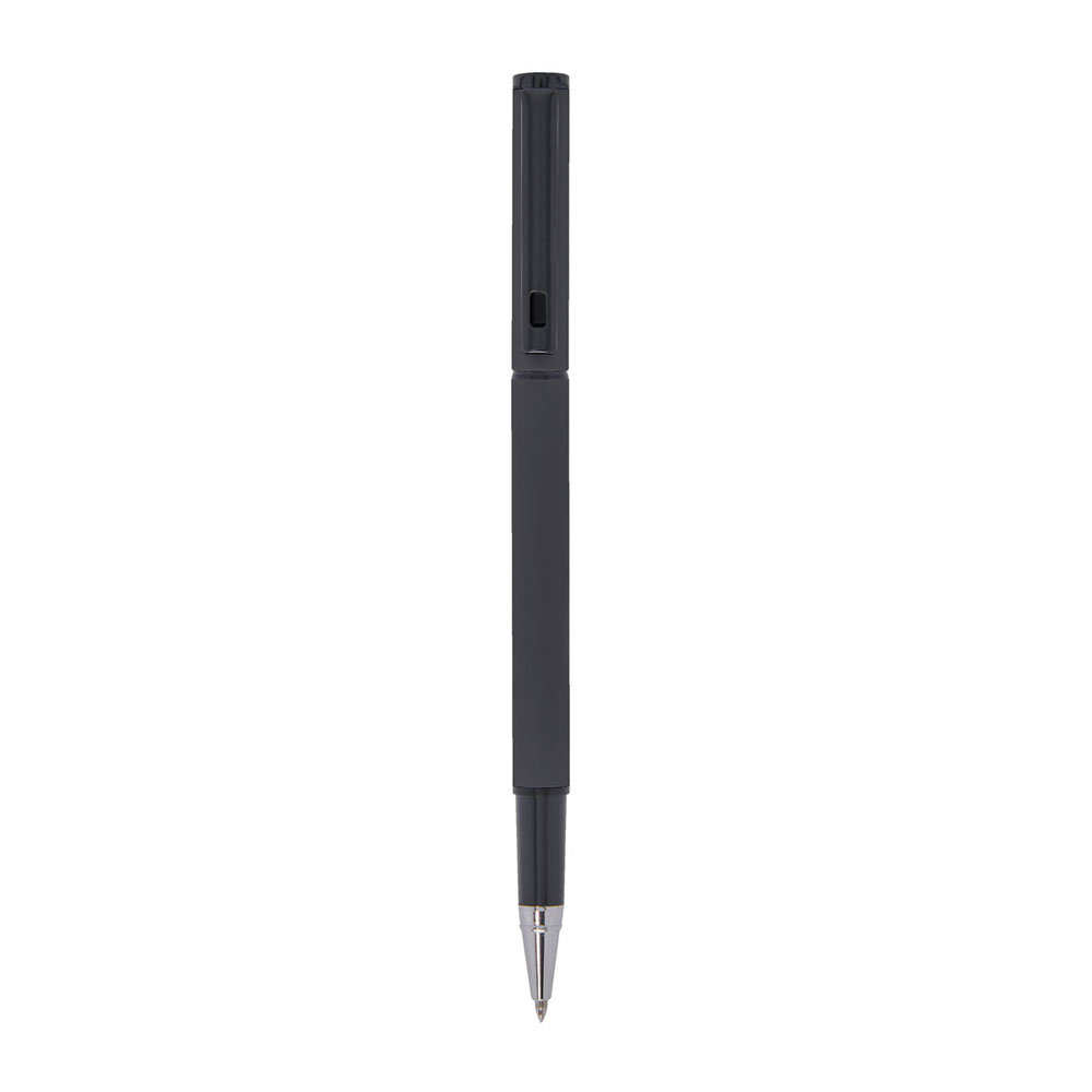 Bolígrafo metálico con tapón. Terminado con recubrimiento tipo rubber. Incluye funda.