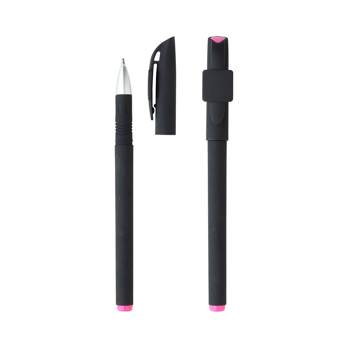 Bolígrafo fabricado en plástico, lo que garantiza su durabilidad y resistencia en el uso diario. El acabado mate le confiere una apariencia moderna, está diseñado con un clip integrado en el cuerpo, lo que te permite sujetarlo fácilmente a tu cuaderno, con detalles de color en el tapón y la parte superior. Tinta de gel escritura negra.