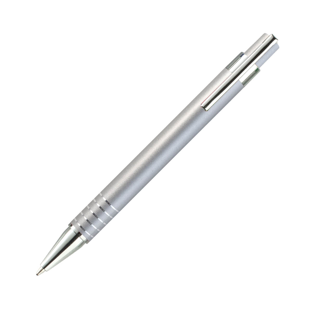 Bolígrafo con barril de aluminio y clip metálico cromado, junto con ligeros detalles en color plata, ofrece una apariencia elegante y moderna. El material de aluminio proporciona durabilidad y resistencia, mientras que el acabado cromado le da un toque de sofisticación. Tinta de escritura azul.