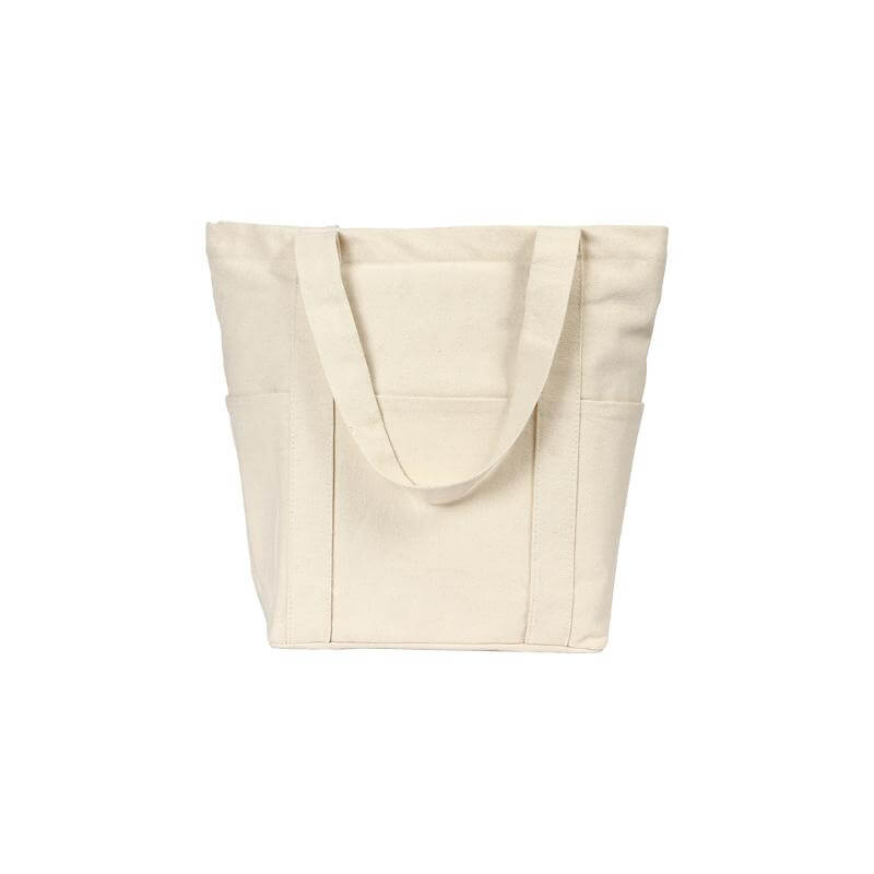 Bolsa tipo tote fabricada en poli-algodón, resistente y cómoda, ideal para el día a día con un estilo práctico y versátil. Cuenta con un compartimento principal amplio, 2 asas largas, bolsa frontal pequeña y otras dos laterales.