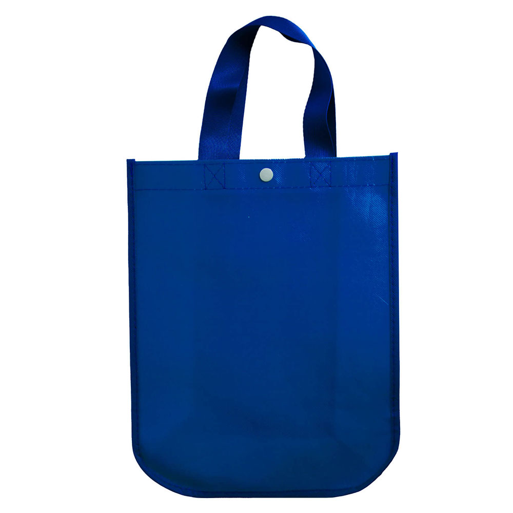 Bolsa de non woven plastificada, cosida, broche y asas satinadas.