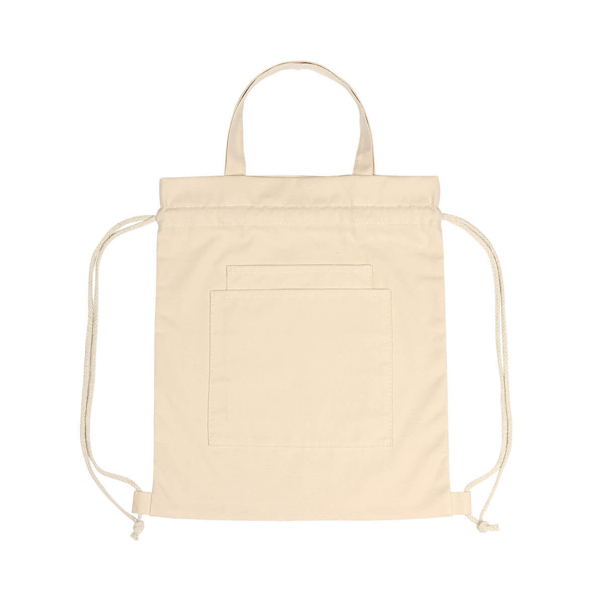 Bolsa de algodón de 10 onzas, tipo tote con bolsillo frontal, asas superiores y cordón para cierre tipo jareta. El bolsillo frontal es ideal para el mantener organizados sus pequeños artículos o acceder rápidamente a elementos como llaves, teléfono móvil o billetera. Y el cordón para cierre tipo jareta facilita abrir y cerrar la bolsa con un simple tirón.