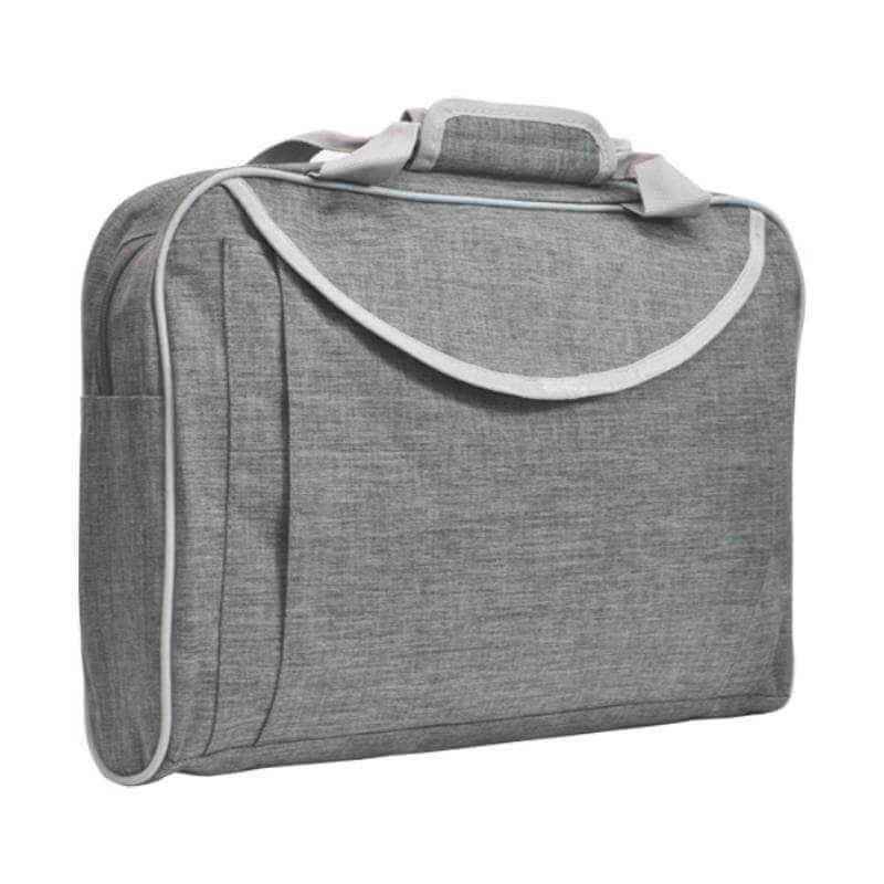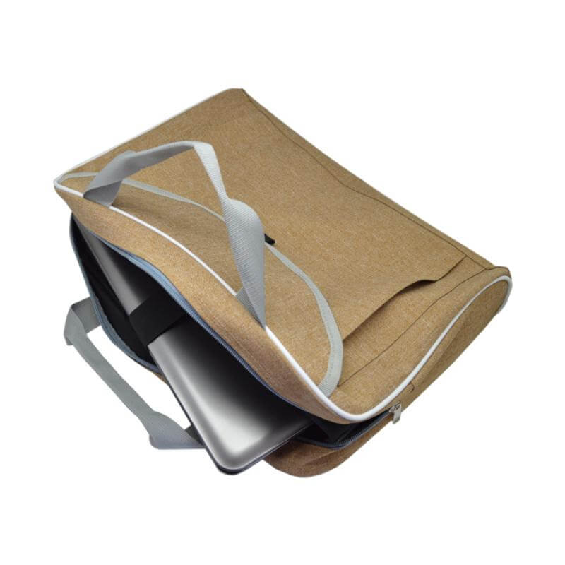 Bolsa tipo maletín con espacio para laptop de hasta 16 pulgadas, interior acolchado que protege el equipo, con compartimento frontal para guardar cables.