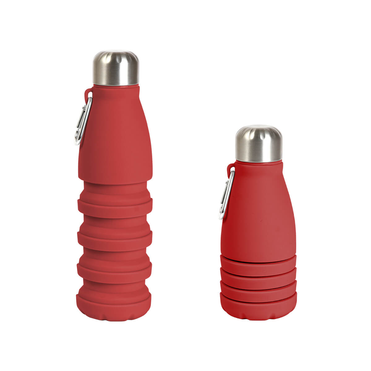 Botella retráctil fabricada en silicón, con capacidad de 550 ml, diseño en color sólido, tapa y arnés fabricados en acero inoxidable. Incluye mosquetón. Este termo te acompaña a donde quieras, por su gran practicidad.