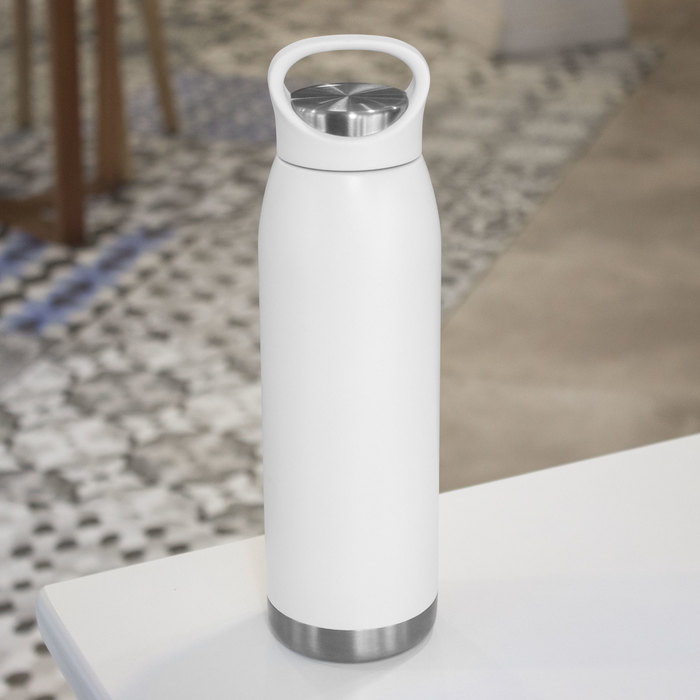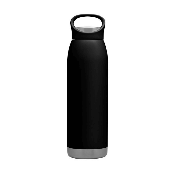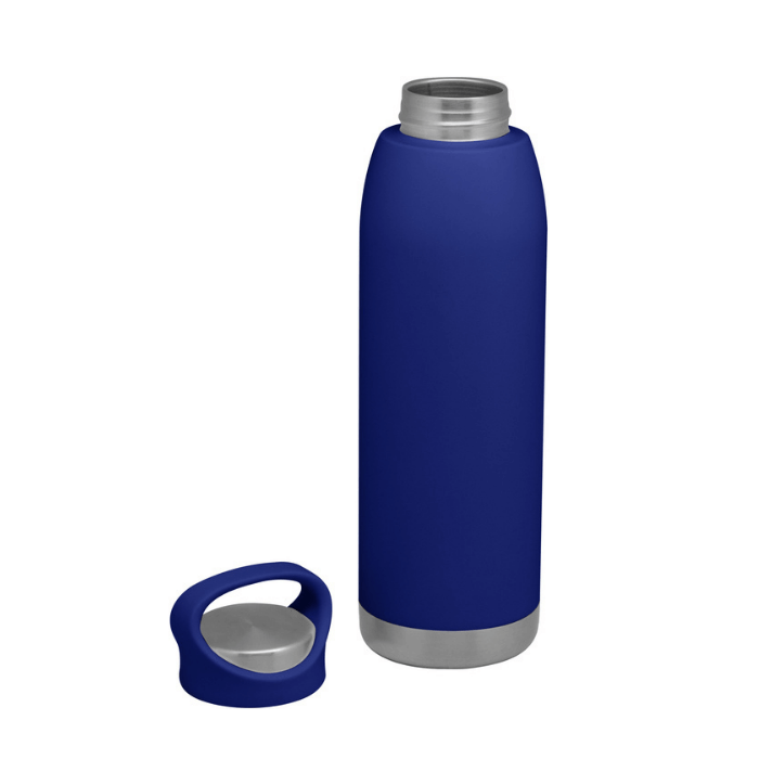 Botella doble pared, sellada al vacío. Botella con aislamiento térmico. Tecnología vacuum. Interior en acero 304 y exterior en acero 201. Pintura en colores mate. Tapa combinada en plástico del mismo color de la botella y acero inoxidable 201. Mantiene hasta 12 hs la temperatura de las bebidas calientes y 24 hs de las bebidas frías.