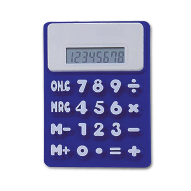 Calculadora flexible con botones gigantes e imán para colocar en superficies metálicas. Batería incluida. Presentación: caja en color blanco.