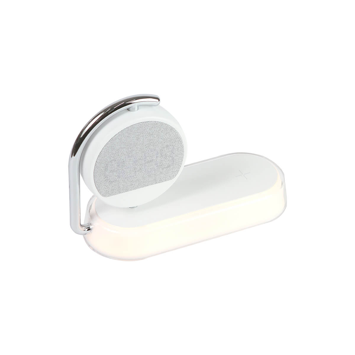 Cargador inalámbrico multifunción con potencia de hasta 15W. Incluye función de reloj y despetador. Además cuenta con lámpara LED. Producto innovador con diseño elegante. Compatible con dispositivos con tecnología Qi.