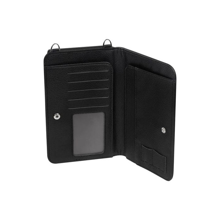 Cartera multiusos. Es el accesorio perfecto para viajeros. Cuenta con un compartimento frontal, especial para tu smartphone para fácil acceso. En su interior incluye secciones dedicadas para tarjetas, documentos y pasaporte, y dos ranuras para tarjetas SIM, ideal para mantener todo organizado durante tus aventuras. En la parte posterior, un bolsillo con cierre es perfecto para monedas o pequeños documentos. Su asa ajustable y removible con broches metálicos añade versatilidad, permitiéndote llevarla como desees.