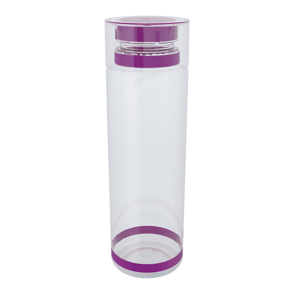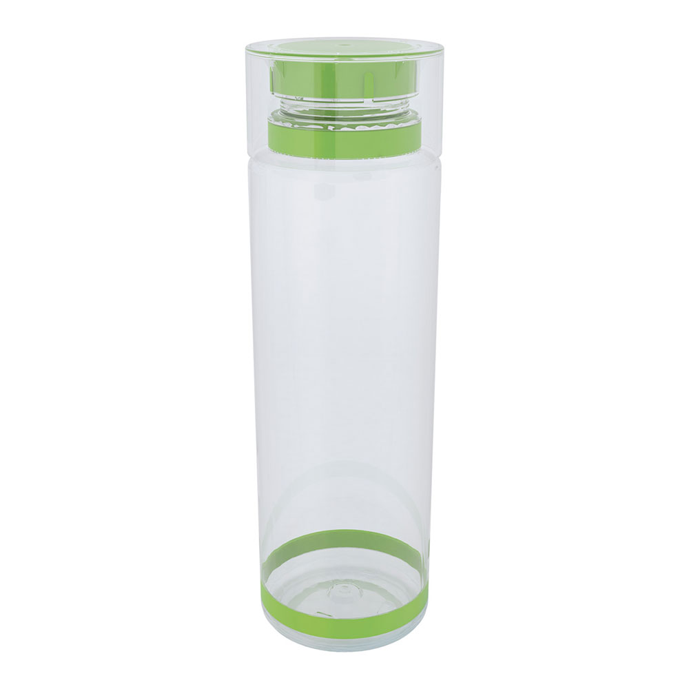 Sistema de rosca twist-off que permite abrir y cerrar la tapa en un giro. Cuenta con dos bandas elásticas de silicon, una en el cuello y otra en la base del cilindro. Mantener el linner en el interior de la tapa en todo momento, se debe retirar hasta su uso final. No exponer el cilindro a temperaturas mayores a 40 °C y revisar que la tapa no este cerrada completamente para su almacenamiento y transportación. No apto para bebidas calientes. No introducir en microondas ni lavavajillas.