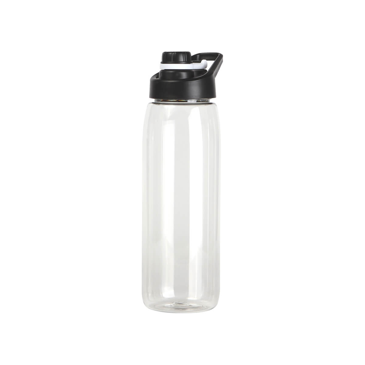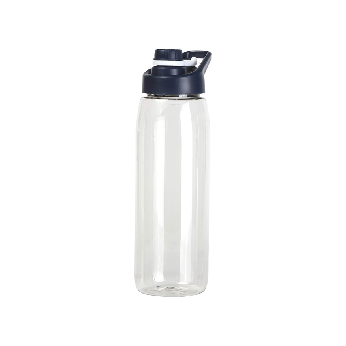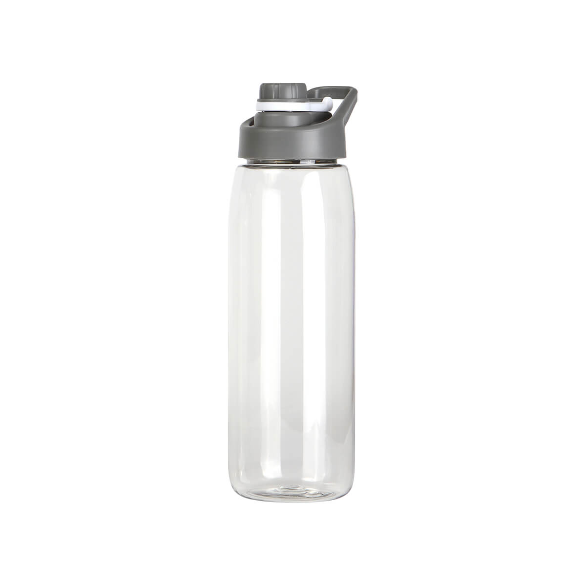 Botella deportiva para agua fabricada en PETG (poliéster de glicol) con tapa tipo rosca y agarradera fabricada en Polipropileno. Este material es resistente a impactos y no retiene olores ni sabores, lo que asegura que el agua se mantenga fresca y pura.  Fabricada en materiales de grado alimenticio, no apto para microondas. Capacidad 860 ml.