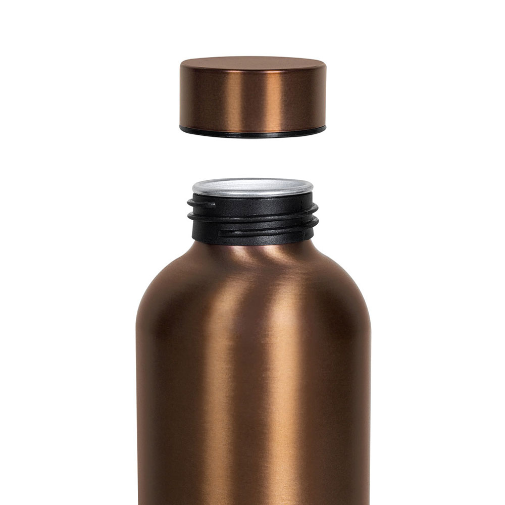 Cilindro de aluminio de una pared. Tapa de plástico con cierre de rosca. Terminado metálico. Incluye caja individual.