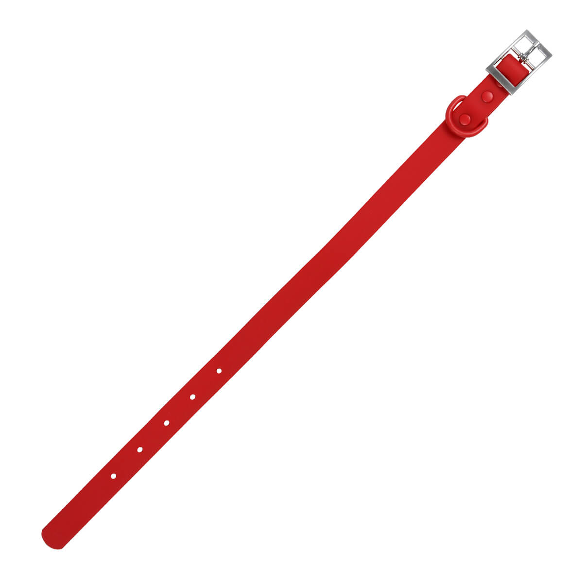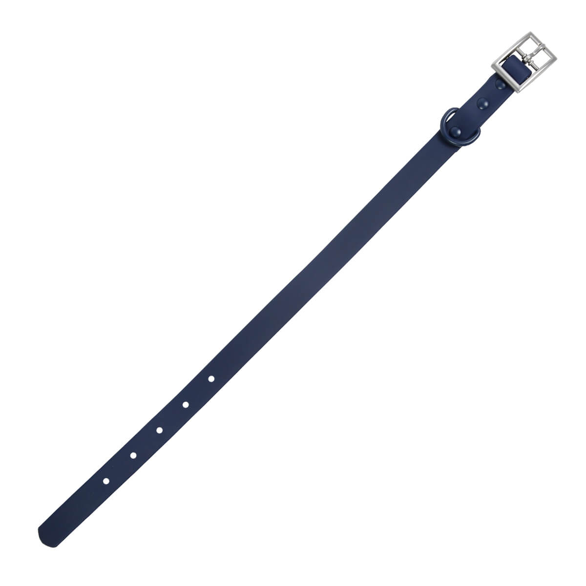 Collar para perro, fabricado en poliéster flexible, con hebilla de aleación de zinc y anillo de acero al carbono. Cuenta con un terminado agradable al tacto y suave para proteger a tu mascota y un anillo para colgar la placa o amarrar la correa.
