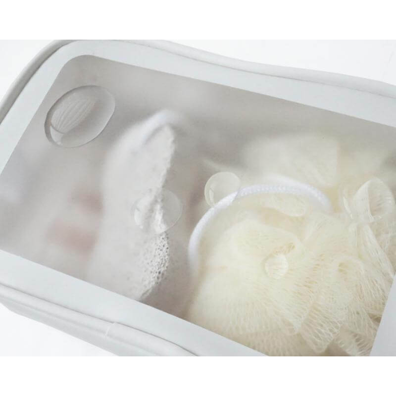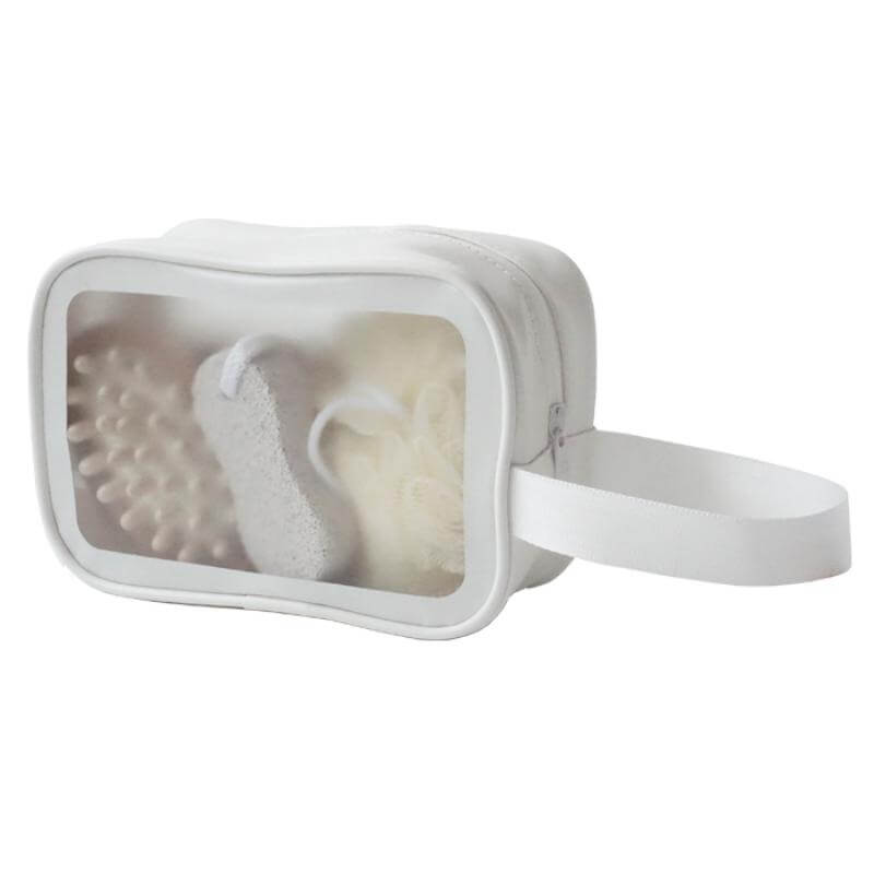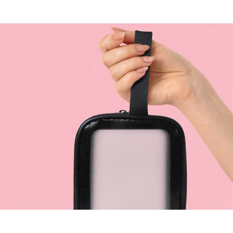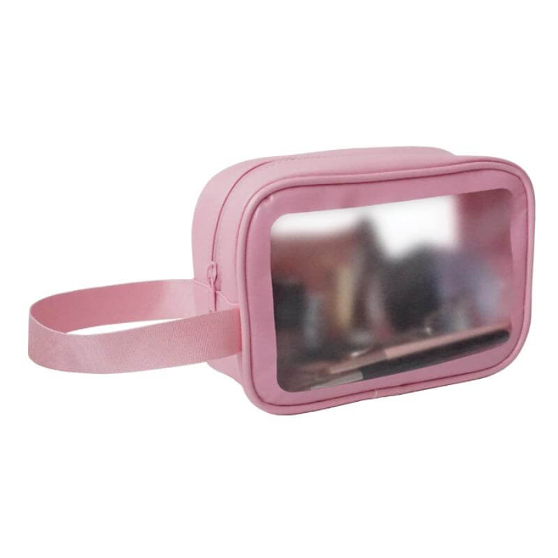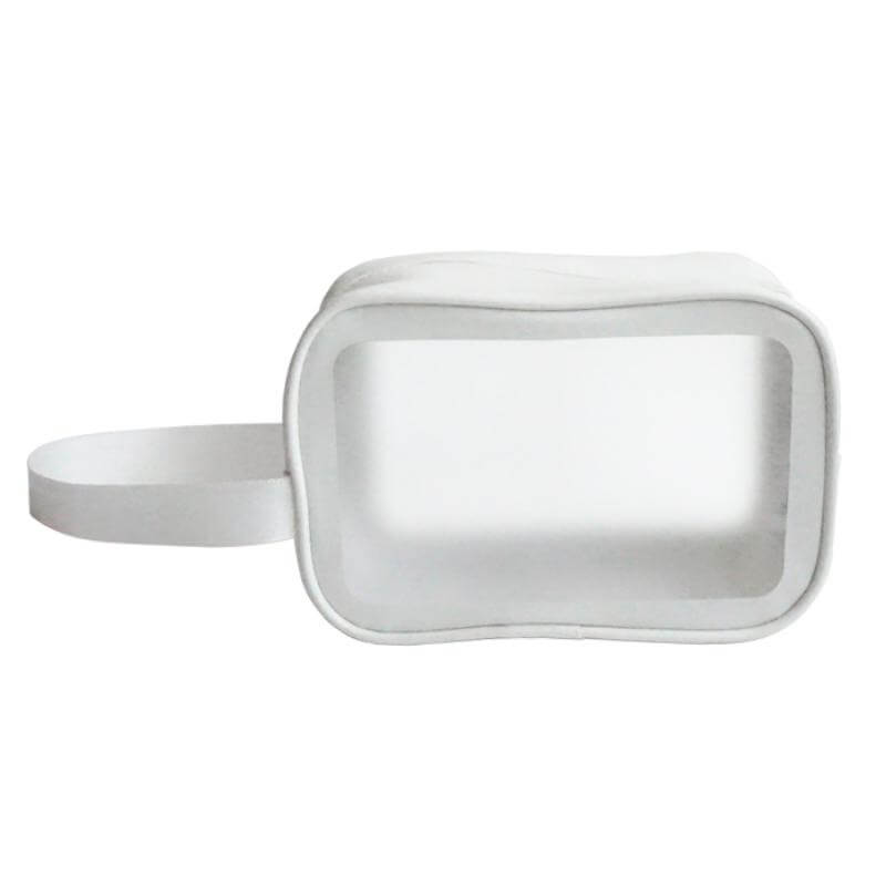 Estuche impermeable para accesorios con cierre, ventana translúcida y asa para agarrar.