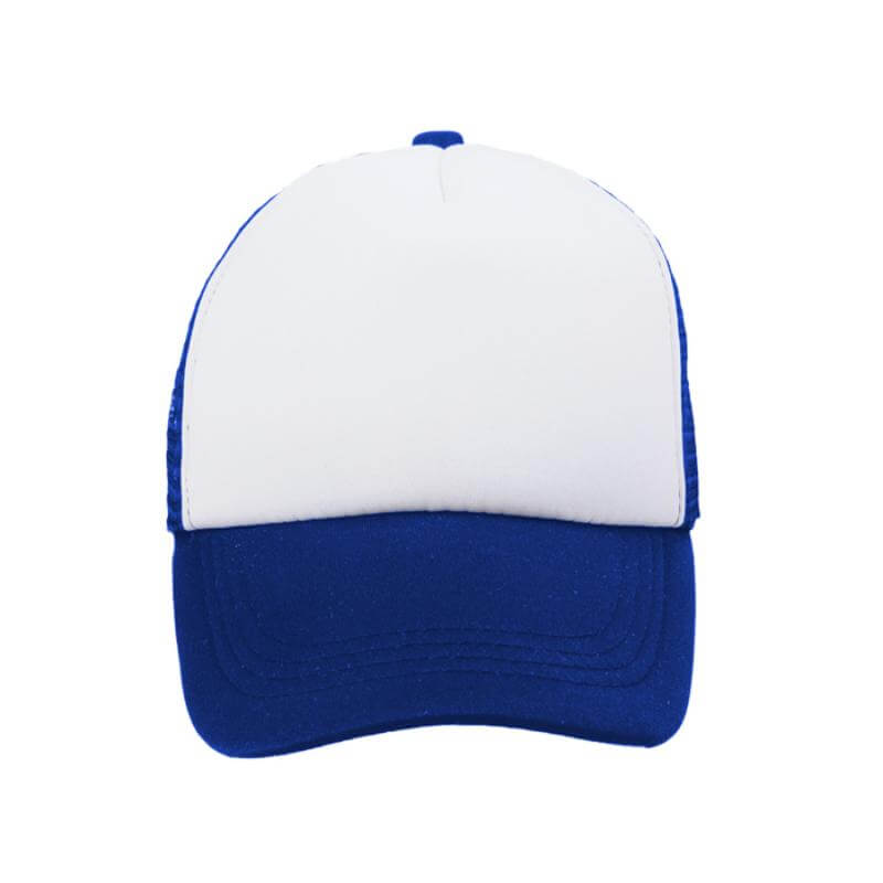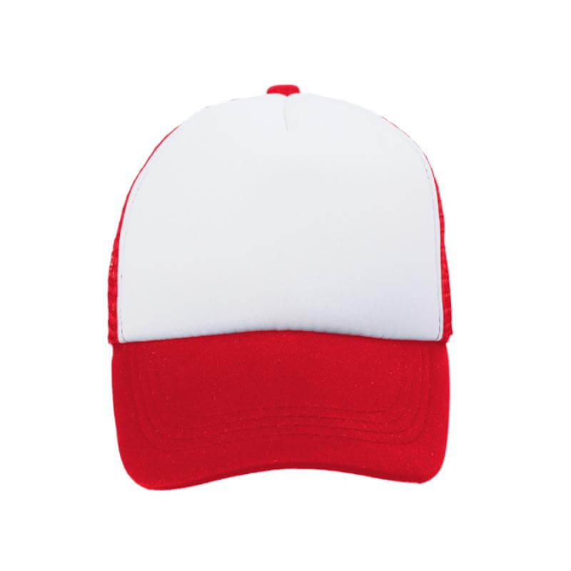 Gorra en poliéster para niños con amplio frente acolchonado y 4 gajos en malla. Ajuste con broche de plástico.