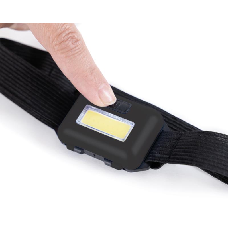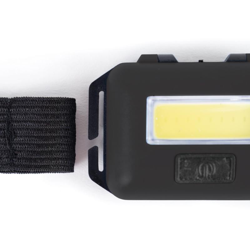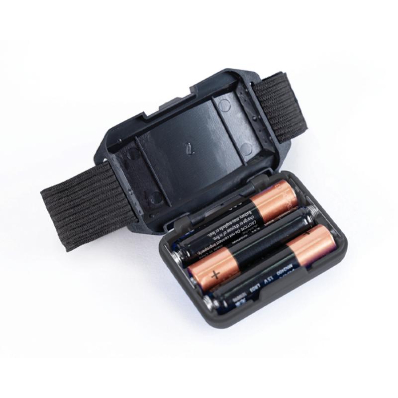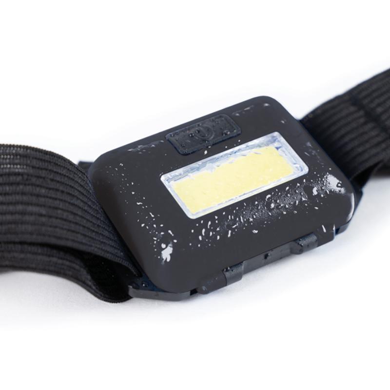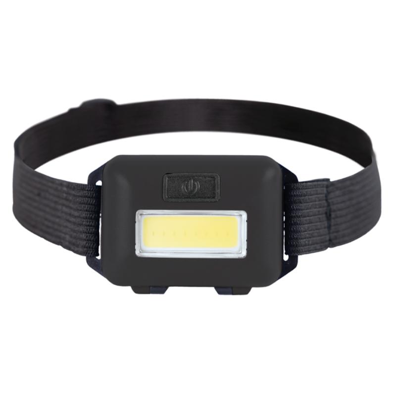 Lámpara frontal de luz LED de (3W) resistente a la lluvia, con botón de encendido y apagado, 3 modalidades de luz y cinta de resorte con broche para ajustar. Utiliza 3 baterías AAA (incluidas). Presentación: Caja de regalo a color.