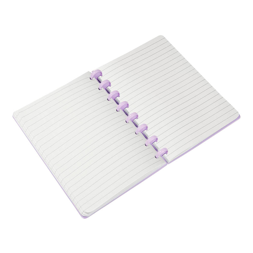 Libreta con 80 hojas a rayas. Cubierta de plástico. Incluye 8 aros de plástico que funcionan como espiral y permite la incorporación de hojas removibles, lo que facilita la reorganización de tus apuntes cuantas veces lo desees. Ideal para notas, bocetos o planificación, esta libreta combina funcionalidad y un diseño innovador.