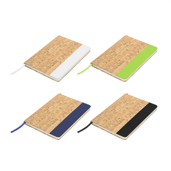 Libreta ecológica con espiral, con 6 hojas negras que incluyen notas adhesivas de diferentes colores.