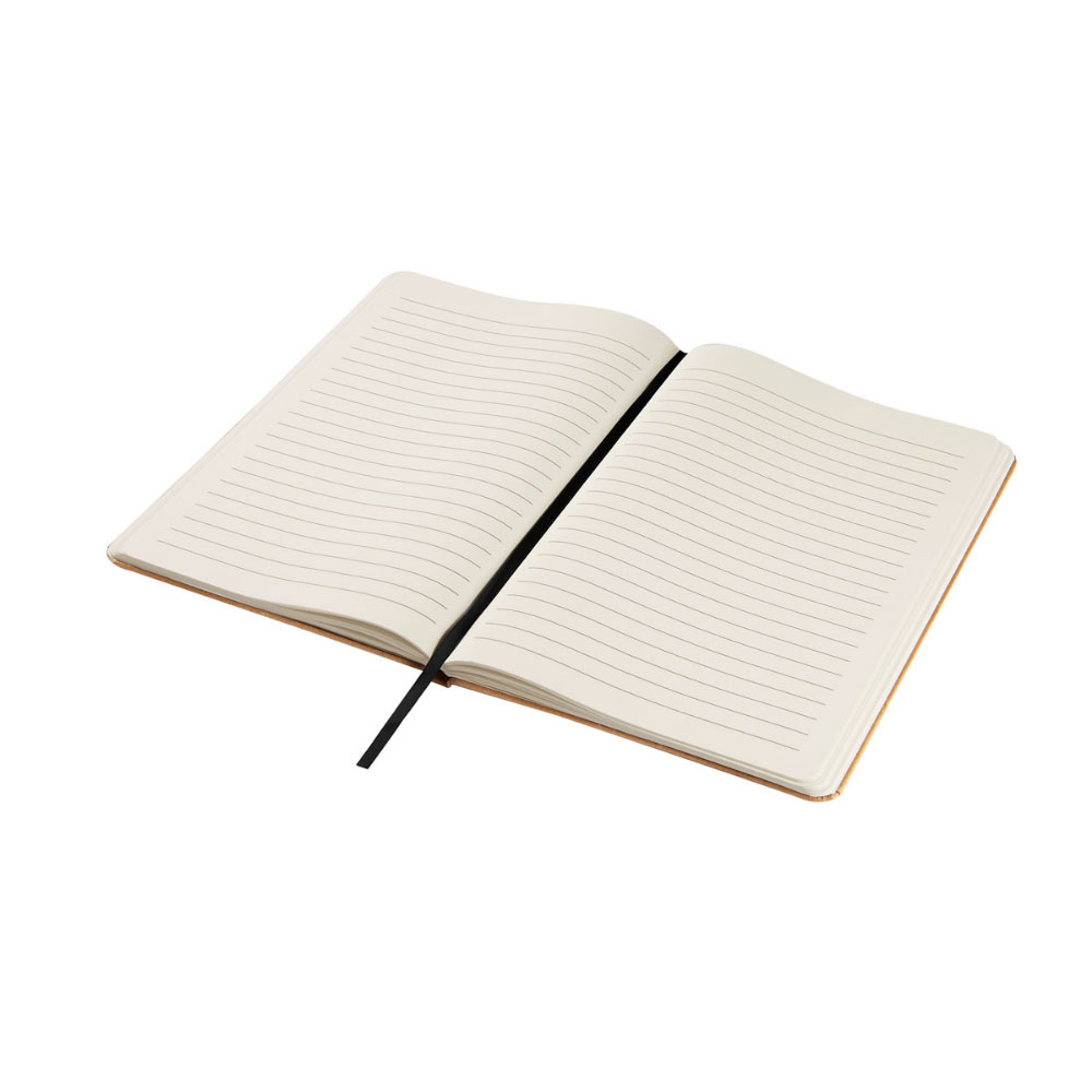 Libreta con 80 hojas de raya. Las hojas interiores están fabricadas a base de piedra natural. Este papel es resistente al agua, al desgarro y a las manchas. Incluye elástico y listón separador. Bolígrafo no incluido.