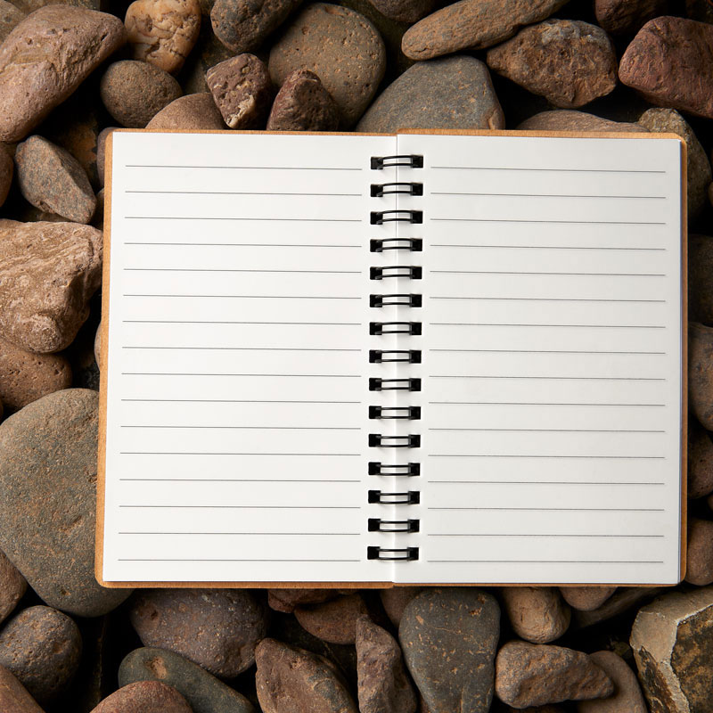 Libreta con 60 hojas de raya. Espiral metálico doble. Las hojas interiores están fabricadas a base de piedra natural. Este papel es resistente al agua, al desgarro y a las manchas.