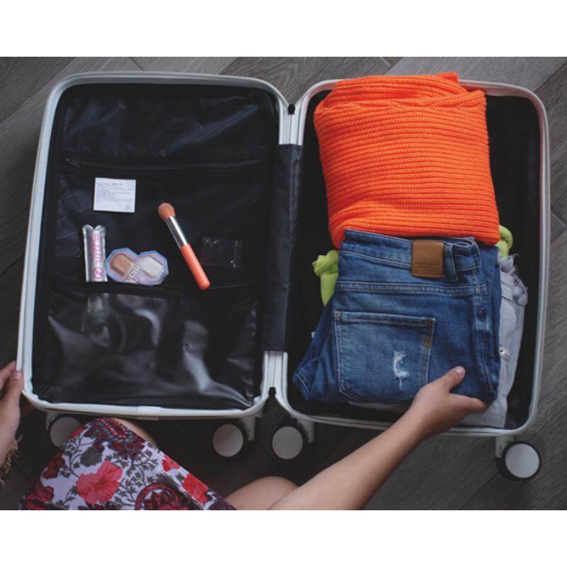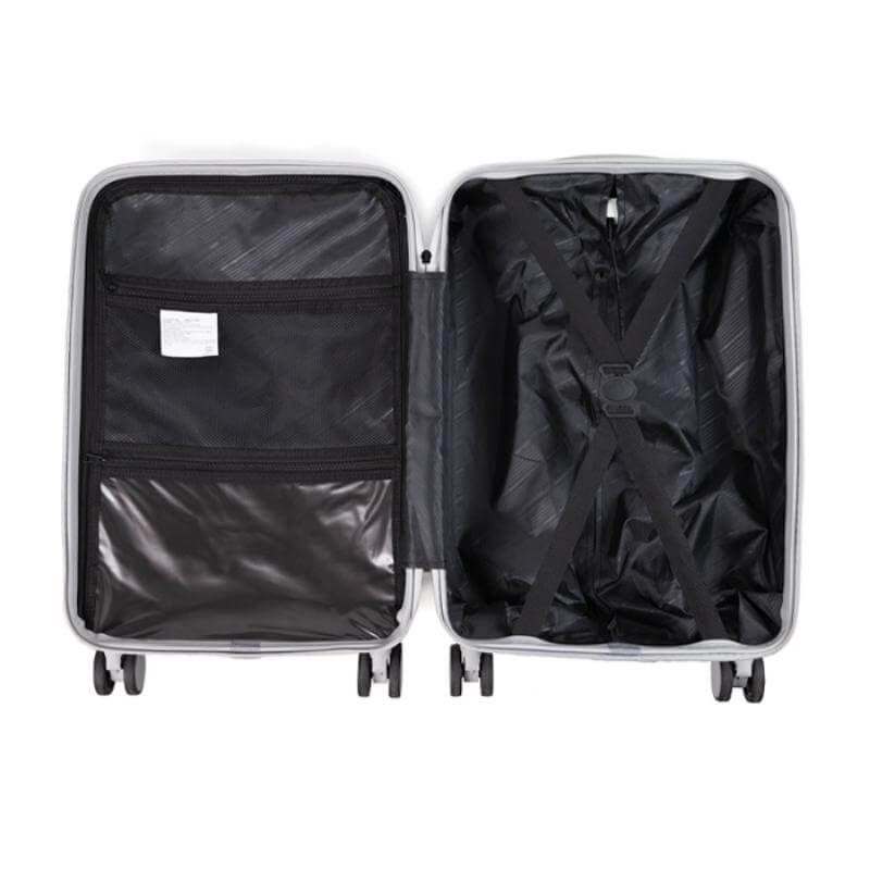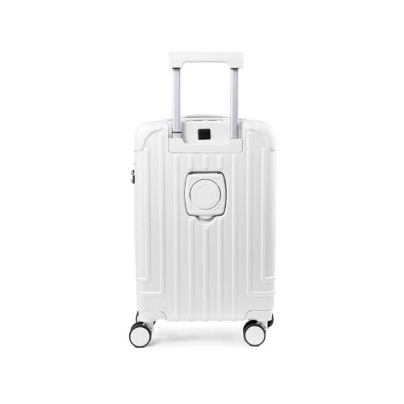 Maleta de viaje texturizada con ruedas dobles que hacen juego con el color de la maleta. Cuenta con candado de seguridad TSA con contraseña, asa metálica expandible de 2 niveles con mango de plástico, asa superior y doble cierre. Interior de doble compartimento 1 para guardar prendas húmedas y otro para accesorios con cierre y elástico de seguridad para sujetar, en el exterior de la maleta incluye puerto de carga USB para conectar tus dispositivos móviles, un porta vasos plegable en la parte trasera de la maleta. Incluye placa metálica por separado para grabar. Tamaño ideal para transportar en aerolíneas económicas.