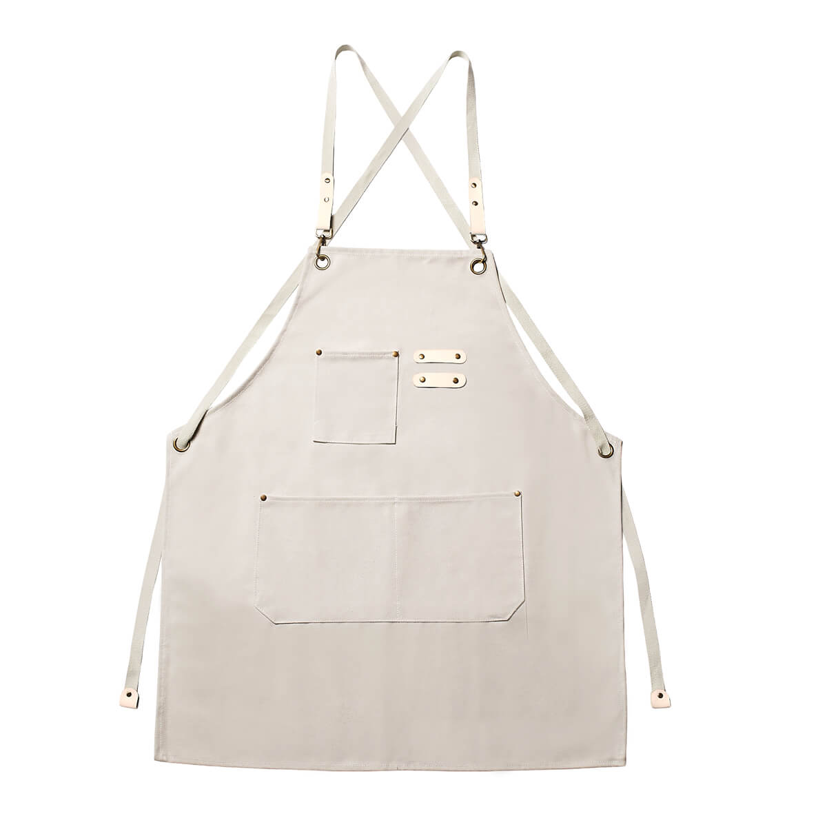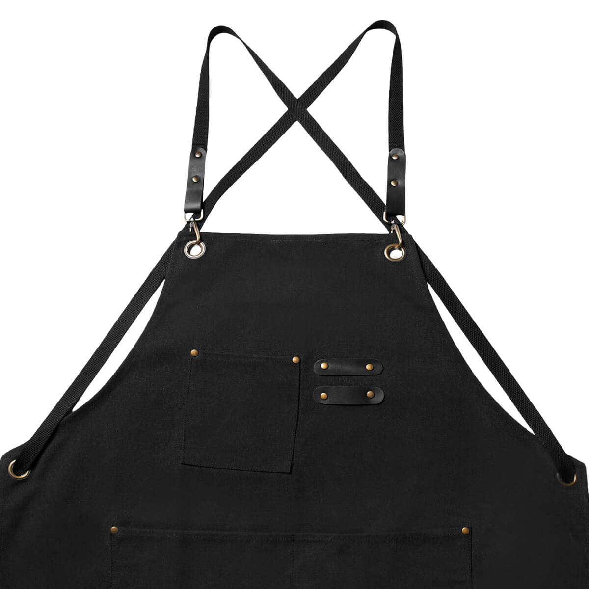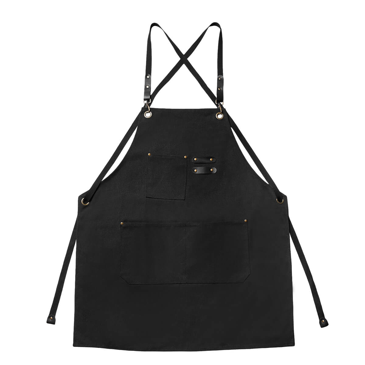 Incluye tres bolsillos frontales: uno en la parte superior, ideal para objetos pequeños, y dos en la parte inferior, perfectos para herramientas, utensilios o accesorios. Cuenta con tirantes ajustables con hebillas metálicas y remaches que aportan mayor resistencia y un toque de estilo. Su diseño cruzado en la espalda ofrece mayor comodidad. Elaborado para entornos de trabajo exigentes, desde cocinas industriales hasta talleres o espacios creativos.