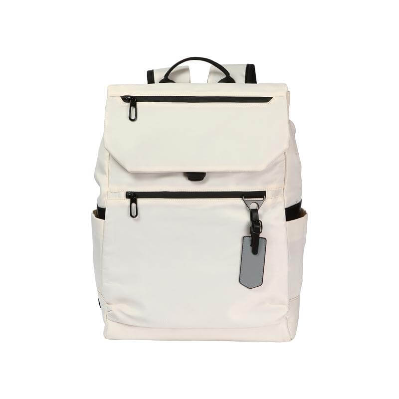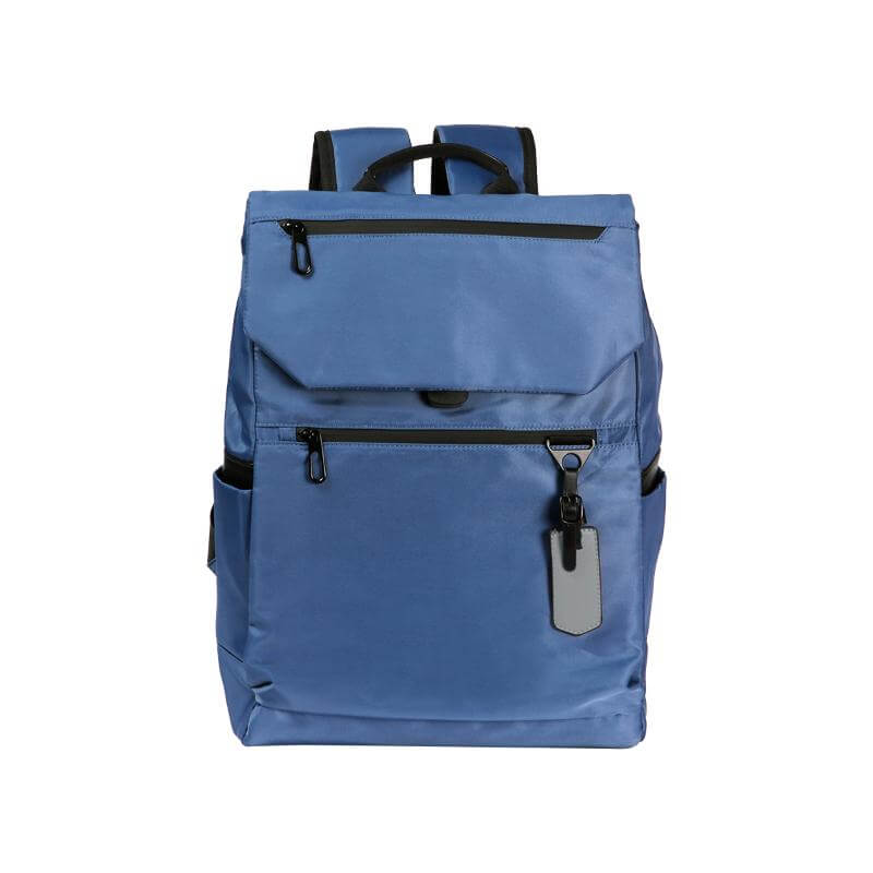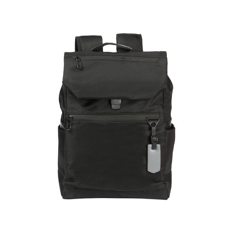 Mochila fabricada en tela poliéster tipo Oxford caracterizada por su resistencia al agua y nylon, con forro interior de poliéster. Cuenta con un compartimento principal, dos compartimentos frontales con cierre, y dos laterales. Tiene dos correas ajustables y acolchonadas para mayor comodidad y un asa superior con detalle en PU. Incluye también un identificador en PU.