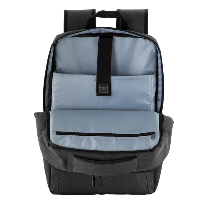 Compartimento frontal, exterior con bolsillo con cierre horizontal y bolsillo vertical con cierre impermeable, interior con bolsillos organizadores y un bolsilo de red. Asa acolchada y reforzada para mejor traslado. 2 correas de hebillas ajustables al volúmen que se traslade. Espalda acolchada con red que permite ventilación. Tira para sujetar la mochila en la manija extensible de un equipaje de mano y bolsillo de seguridad con cierre. Correas acolchadas. Tiradores de cierre metálicos.