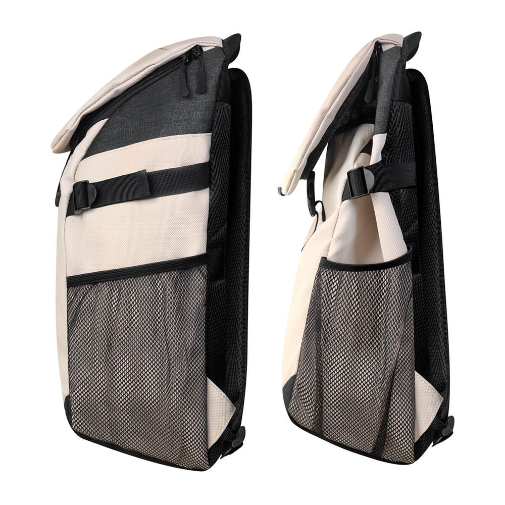 Mochila con diseño casual. Su parte frontal esta fabricada en material PU resistente a salpicaduras. Incluye bolsillo principal con cierre y compartimento para laptop de hasta 14’’. Bolsillo frontal con cierre, para llevar objetos pequeños. o pertenecias de valor, agrega dos bolsillos de malla laterales y correas ajustables para cerrar o expandir su capacidad. En la parte posterior, incluye respaldo acoginado para mayor comodidad y banda para transportar en trolley.