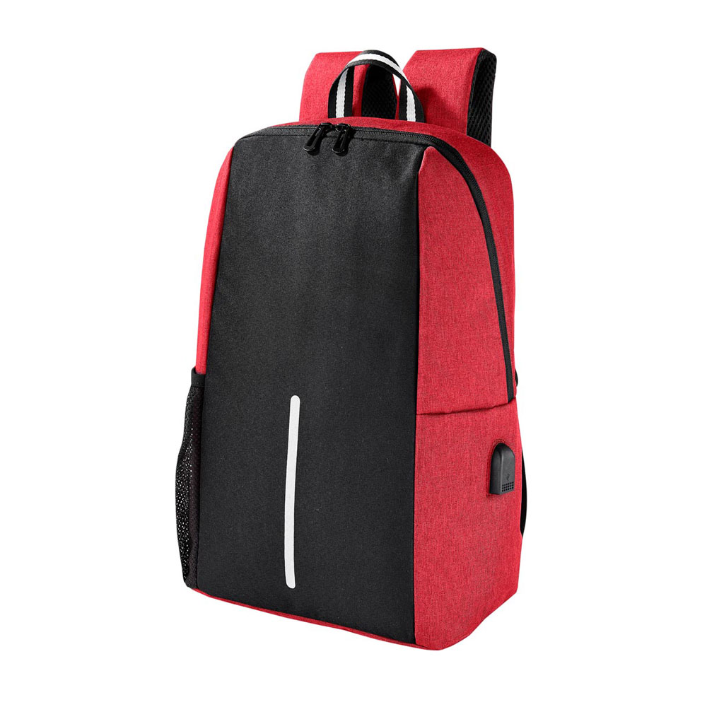 Mochila con salida USB (se requiere conectar a batería portátil) para cargar smartphone. Compartimento principal para laptop 16″. Bolsillo interno para organizar accesorios. Incluye bolsillo lateral de red y aditamento especial para colocar en trolley.