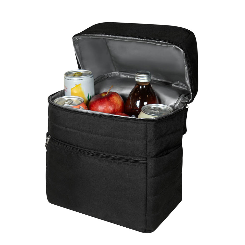 Lonchera tipo mochila con asas, su diseño versátil permite llevarla como una mochila, facilitando su transporte. Cuenta con un bolsillo principal con cierre, que permite guardar los alimentos de manera segura y organizada. Incluye un bolsillo frontal con cierre, ideal para llevar utensilios o artículos pequeños. También cuenta con dos bolsillos laterales, adecuados para llevar botellas de agua u otros objetos de acceso rápido. Capacidad para 12 latas.