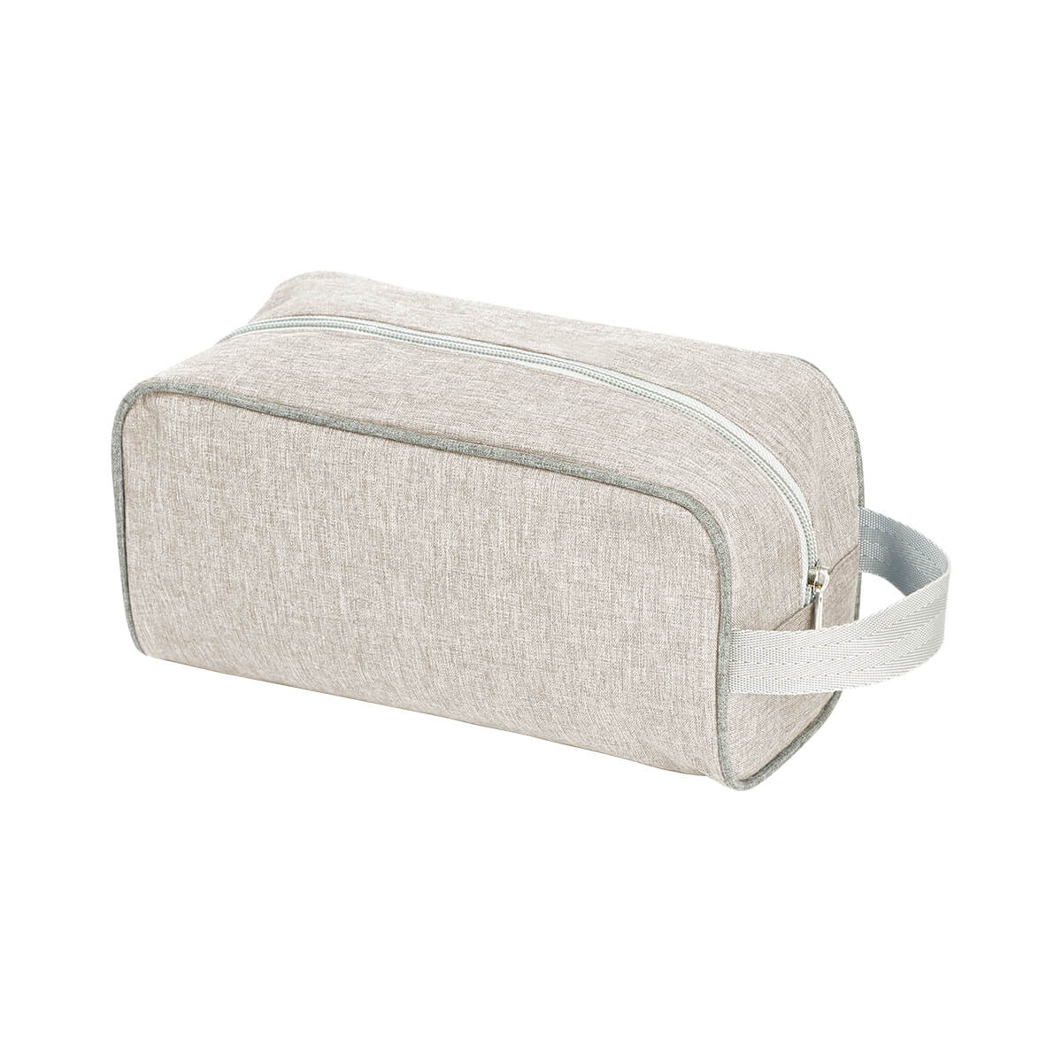 Bolsa multiusos / cosmetiquera fabricada en poliéster, con detalles en color beige. Diseñada para adaptarse a diversas necesidades, esta bolsa multiusos es perfecta para llevarla contigo a cualquier lugar, cuenta con asa lateral, que te brinda opciones adicionales de transporte y facilita su manejo.