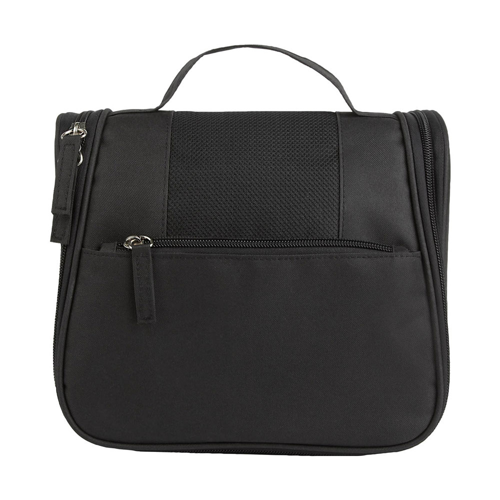 Organizador con bolsa con cierre y asa en el exterior. Incluye gancho, 2 compartimentos con cierre y 4 bolsas de malla en el interior.