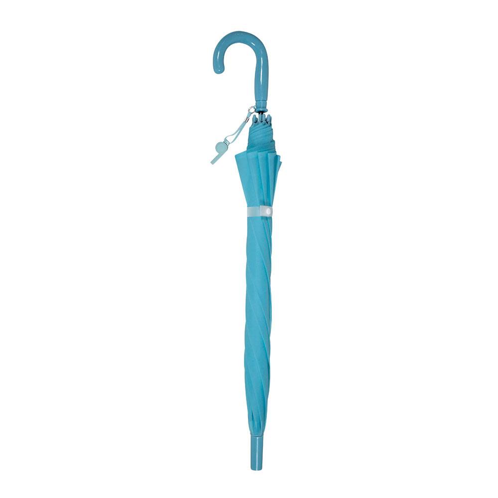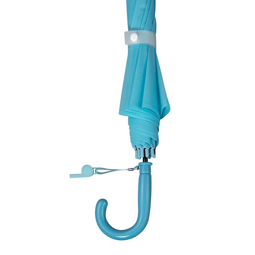 Paraguas con diseño de 8 paneles. Su medida es ideal para niños y su sistema de apertura automática facilita su uso. El mango de plástico no solo proporciona un agarre cómodo, sino que también cuenta con un divertido silbato de juguete incorporado. ¡Este paraguas no solo protege de la lluvia, sino que también despierta la imaginación y el entusiasmo de los mas pequeños.!
