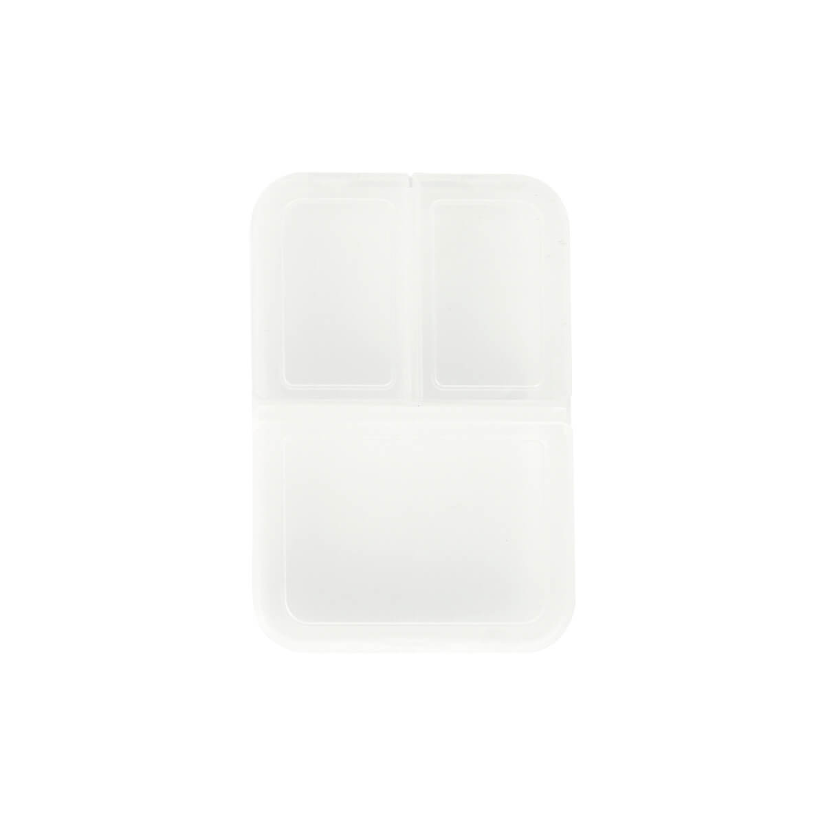 Pastillero fabricado en plástico, lo que lo hace ligero, duradero y fácil de limpiar. Cuenta con tres compartimentos individuales que te permiten separar y almacenar diferentes tipos de medicamentos o suplementos. El tamaño compacto del pastillero lo hace ideal para llevarlo contigo en tu bolsillo, bolso o maletín.