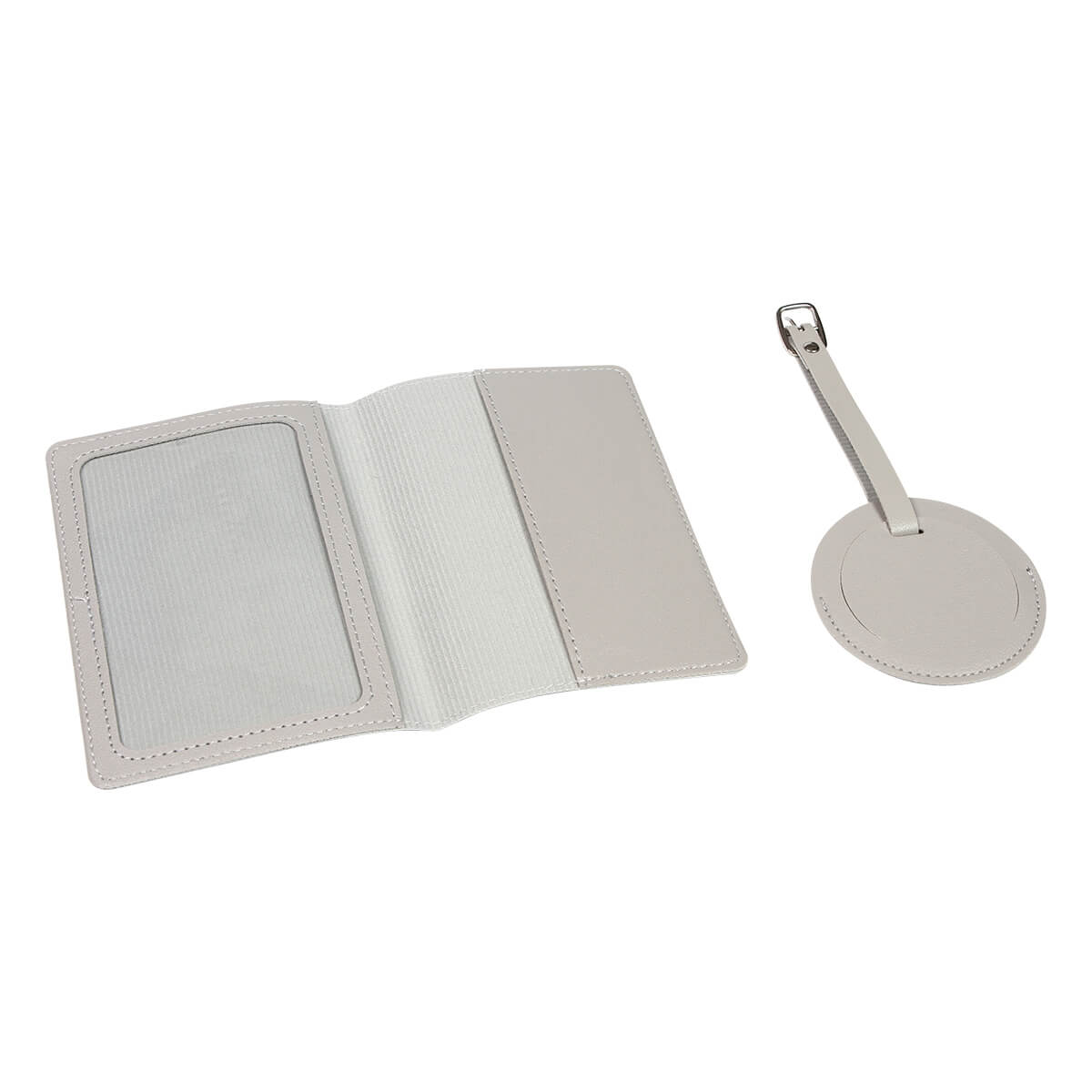 Porta pasaporte con identificador de maleta fabricados en curpiel color sólido. El identificador en forma circular tiene una correa ajustable para sujetar en cualquier tipo de maleta. El porta pasaporte cuenta con la medida perfecta para tener este documento personal seguro en tus viajes además de dos compartimentos, uno con ventana transparente y otro de curpiel.