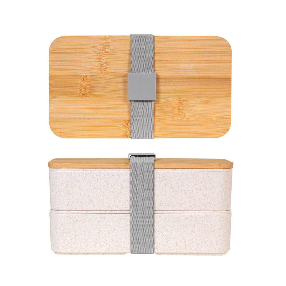 Contenedor de alimentos con doble compartimento. Capacidad total de 1 litro. Incluye tenedor, cuchillo y cuchara. Su fabricación lo hace amigable con el medio ambiente, al incorporar fibra de Trigo en sus materiales. La elegante Tapa de bambú asegura tus alimentos y la banda elástica mantiene todo firmemente cerrado. Practico y versátil, este set es apto para lavavajillas y microondas, excluyendo la Tapa de bambú. La madera es un producto natural el cual puede presentar variaciones en tonalidades y vetas.