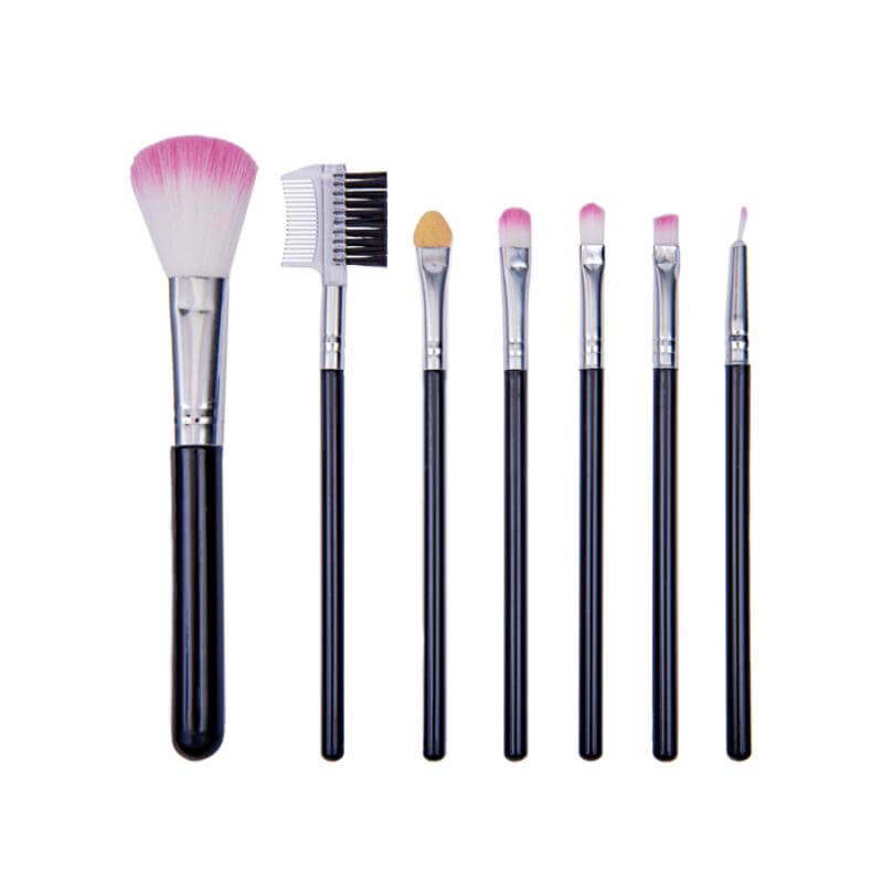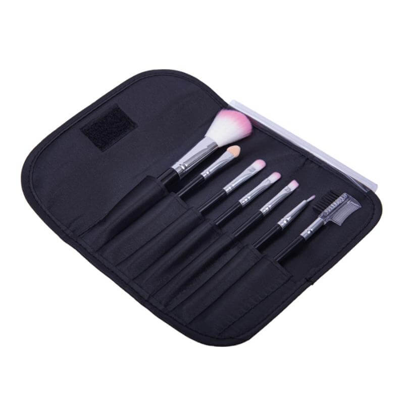 Estuche de poliéster incluye 6 brochas para maquillaje y cepillo para cejas.