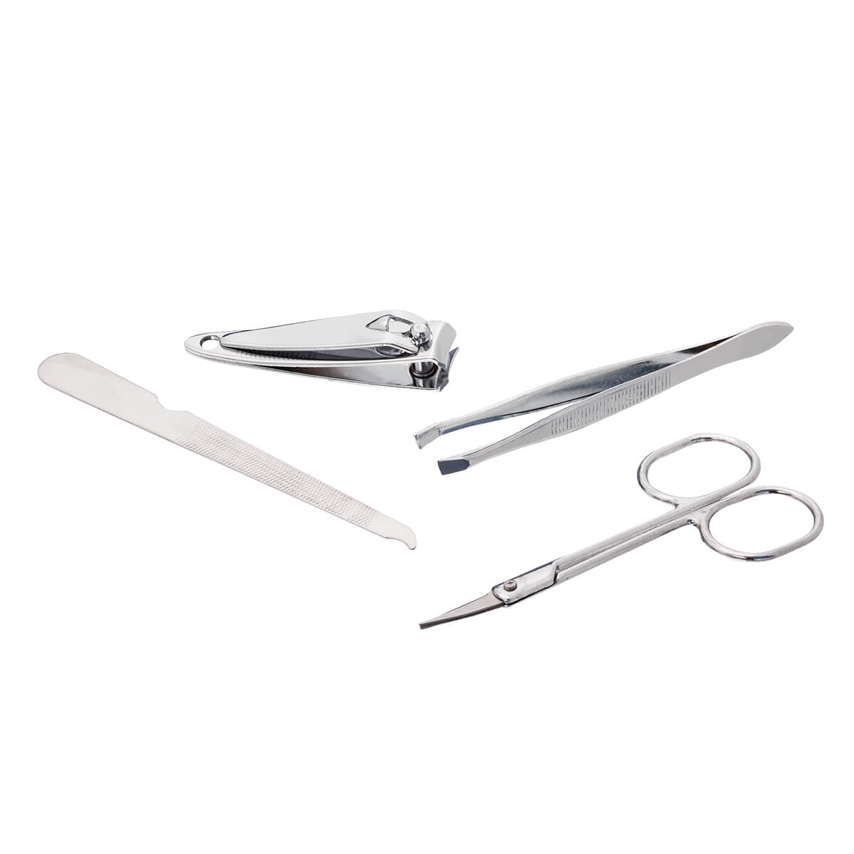 Set de manicura en estuche ovalado de metal, con 4 piezas (cortaúñas, lima de metal, pinzas para cutículas y tijeras).
