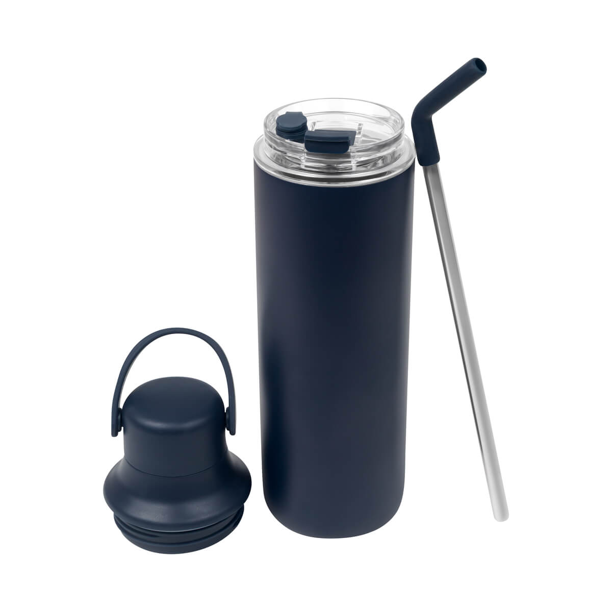 Original set de termo con tapas intercambiables. Incluye termo doble pared, cerrado al vacío. Pared interna y externa de acero inoxidable. Cuerpo con terminado rugoso que permite tener un mejor agarre. Cuenta con una tapa de plástico con doble sistema de rosca, la más amplia permite introducir hielos y otros ingredientes, mientras que su segunda rosca, incluye una boquilla pequeña, que facilita su uso.