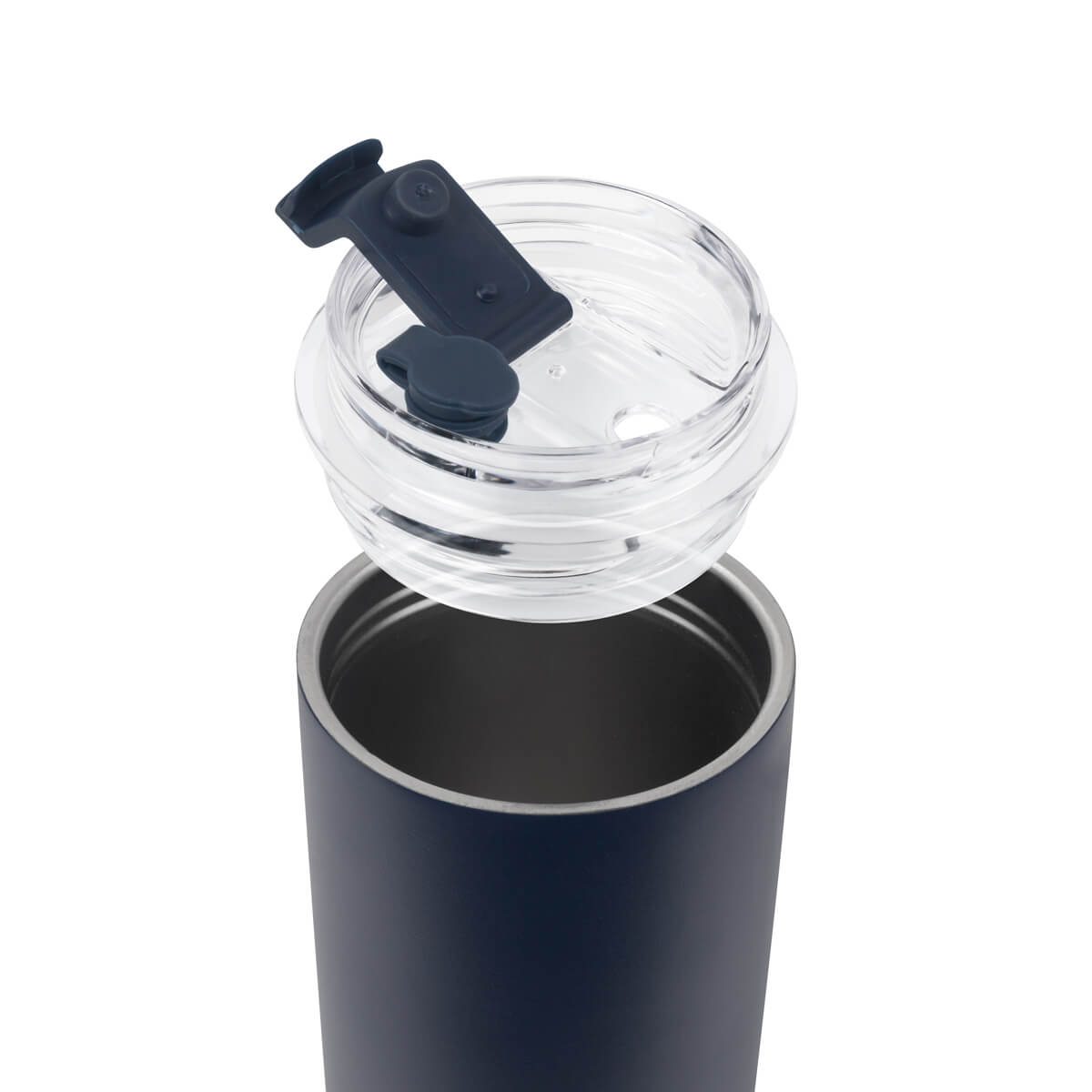Su segunda tapa, también con sistema de rosca, incluye una sobre tapa tipo push y ranura especial para popote. Mantiene temperatura caliente 6 hrs y temperatura fría 12 hrs. Capacidad 20 Oz. Incluye popote metálico con boquilla de rubber y caja de regalo.