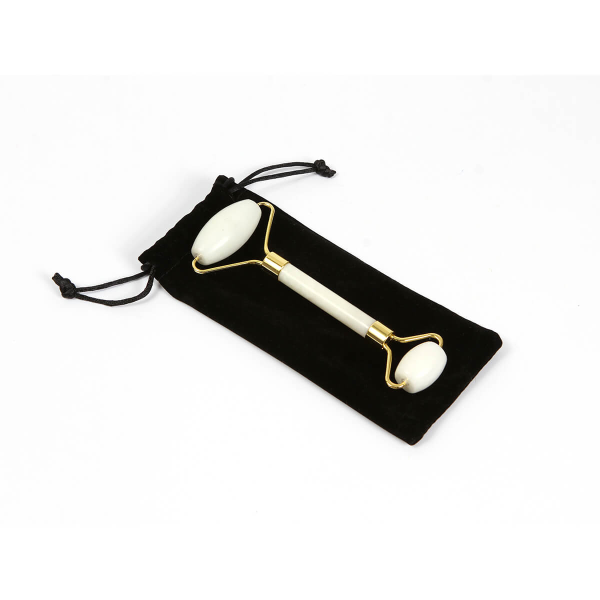 Rodillo de cuarzo blanco para masaje facial con bolsa de tela. El rodillo de cuarzo para masaje facial es una herramienta versátil y elegante que puede contribuir a mejorar la salud y la apariencia de la piel del rostro. Su estuche de tela es ideal para mantener el rodillo limpio y protegido cuando no está en uso.