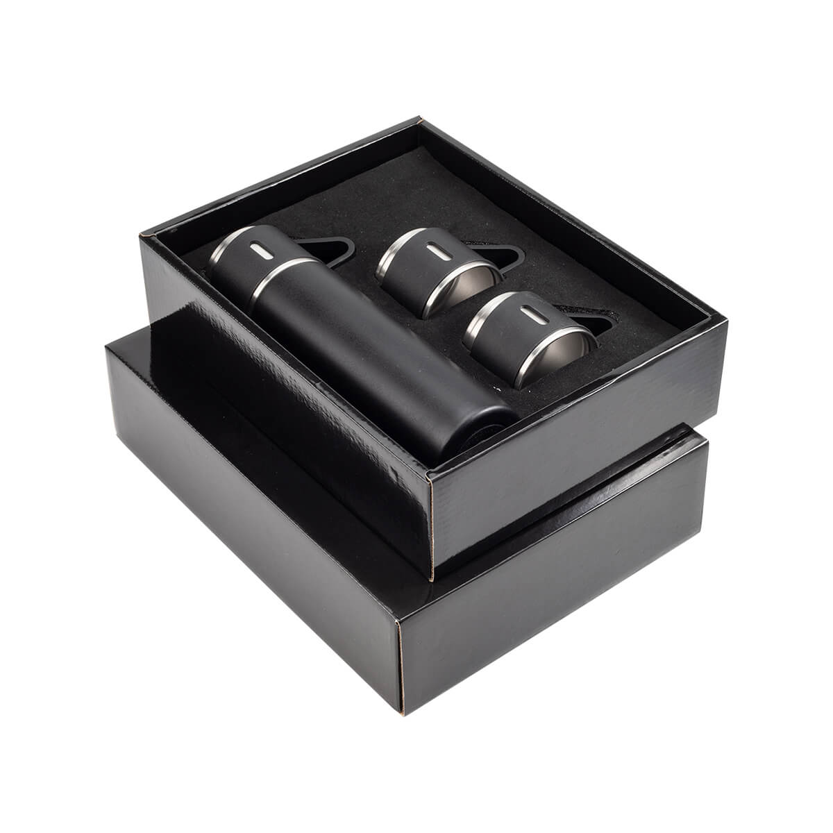 Set de termo de acero inoxidable doble pared con recubrimiento de PP, su tapa de botón asegura tus bebidas y te ayuda a servirlas fácilmente, incluye 2 tazas fabricados con los mismos materiales, mantiene bebidas frías o calientes por un largo tiempo. No usar en microondas. Capacidad 500 ml. Incluye caja de cartón individual